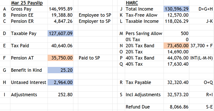 There shouldn't be a problem if she claims the £8k. All that that will mean is when the correct calculation is issued it will include an extra line to reflect the fact that £8k has already been repaid.tetrarch said:HMRC have clearly treated the pension contribution as being made using the relief at source method, with the £35,750 being treated as the gross amount not the net amount.