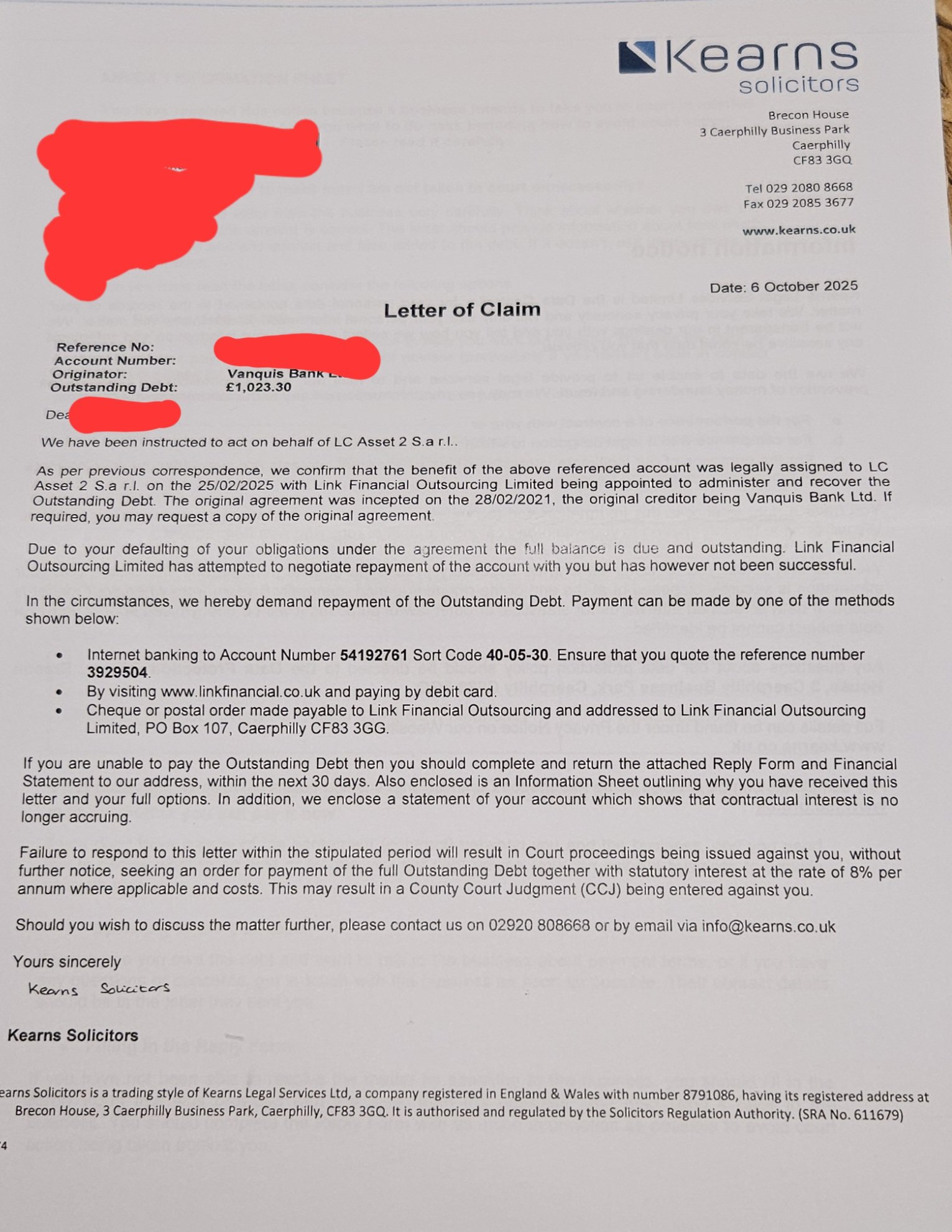 Long story short, after 1 payment to both Vanquis and Marisota, they sold my debt to LC Asset 2, who instructed Link Financial. I have been with these companies a long time and this is the first financial defaults I have had for many years.