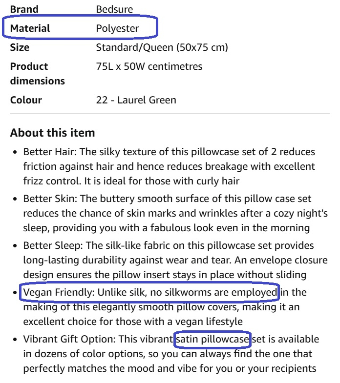 I took from the "The silky soft Bedsure Satin Pillowcases" that the best guess would be C. Silk but as you say, they may well correct the options.11