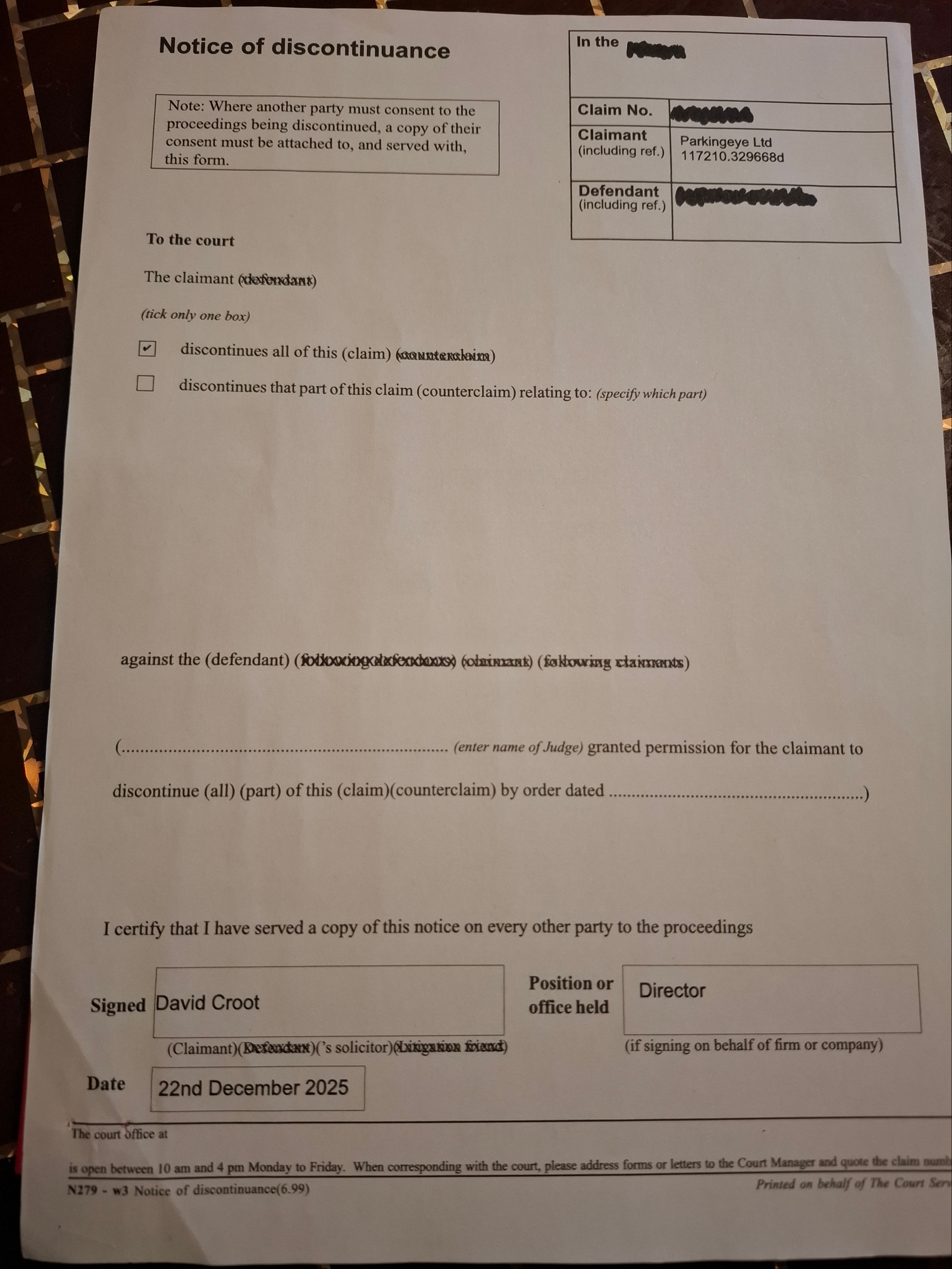 I'm happy to inform you that my case which was transferred to the small claims court and due for hearing in March 2026 has now been discontinued by the claimant!