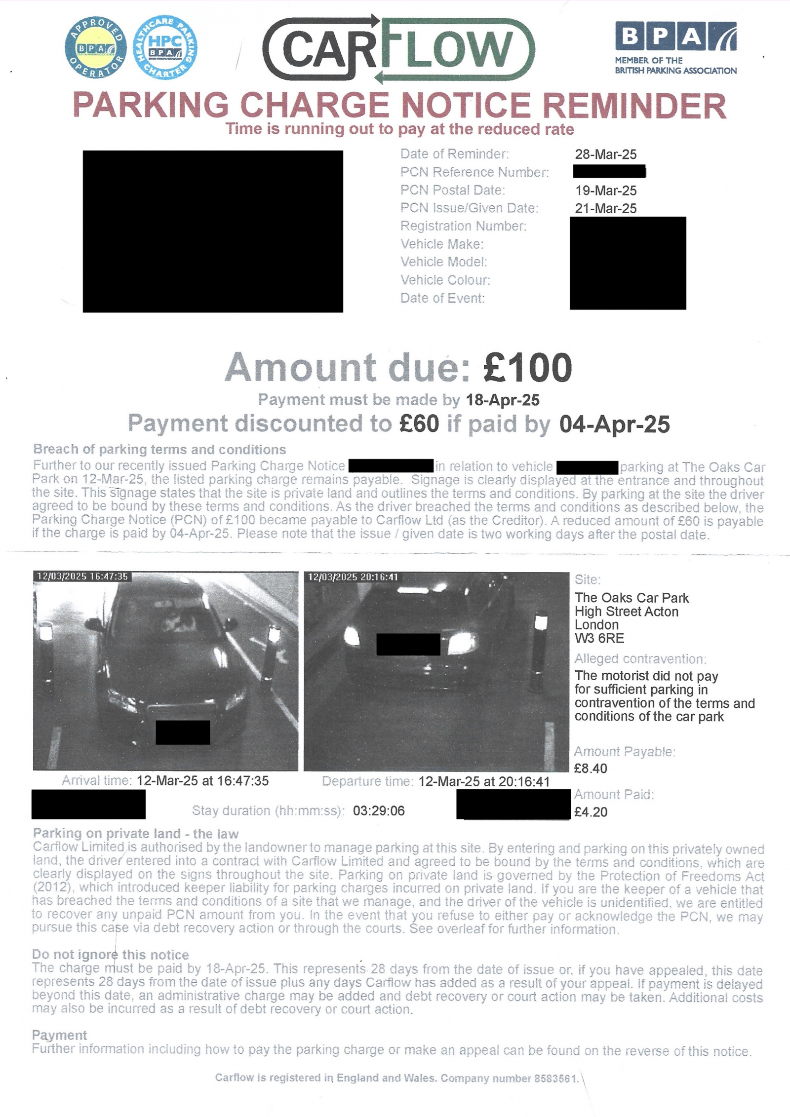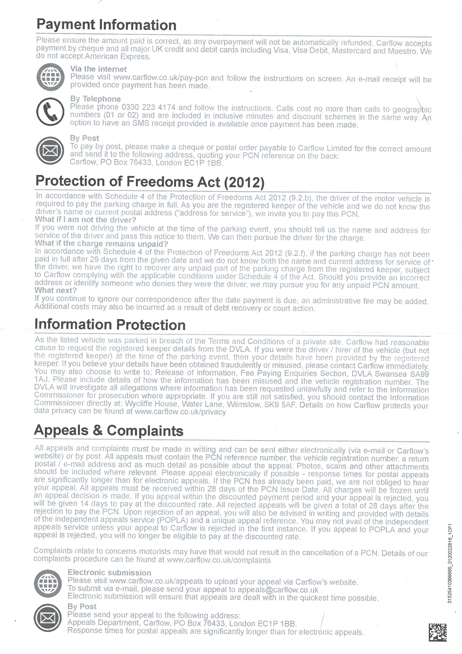 Nowt to lose because Carflow (if you are reading this) you aren't going to be paid for this one.PRIVATE 'PCN'? DON'T PAY BUT DON'T IGNORE IT (except N.Ireland).