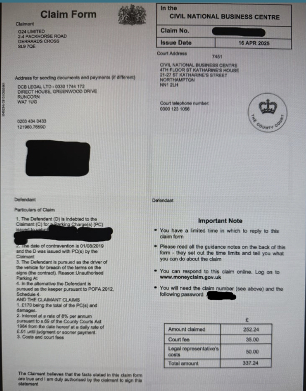 It wasn't a fine, it was an invoice from a private parking company, G240 -