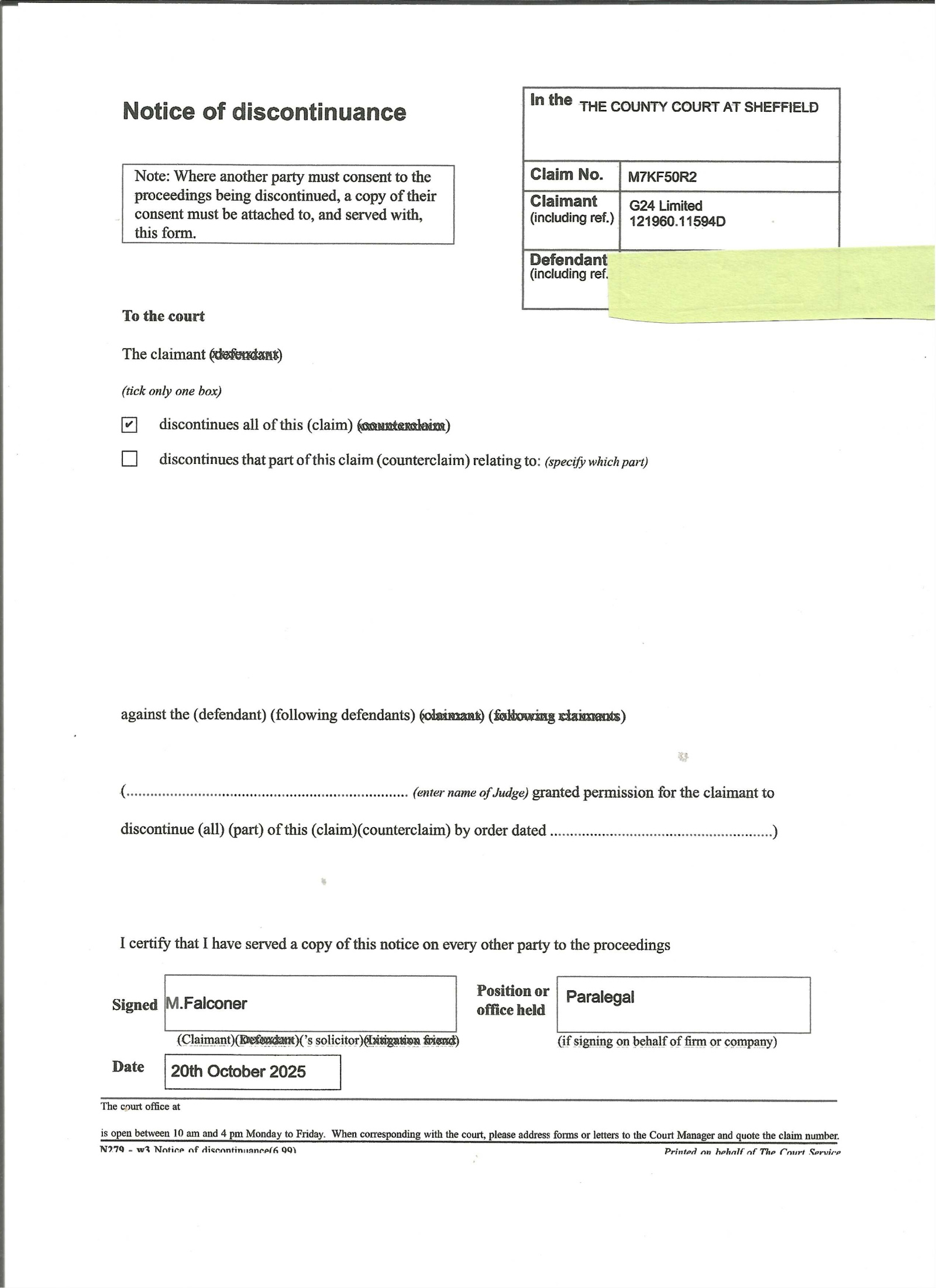 DCB Legal/G24Ltd court claim form