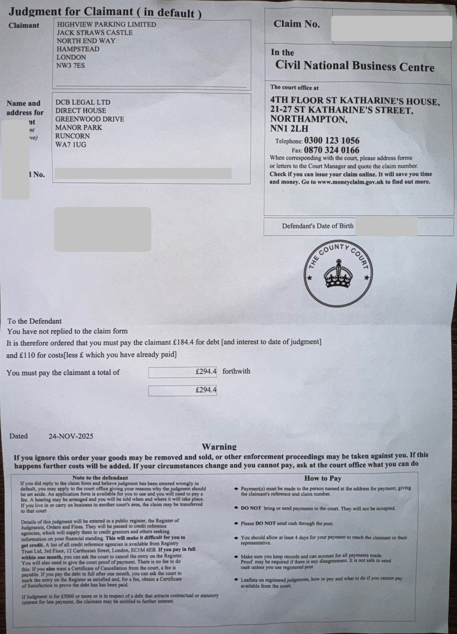 I have received a CCJ requiring payment by 24 December. However, this has arisen due to an administrative issue rather than any failure on my part.