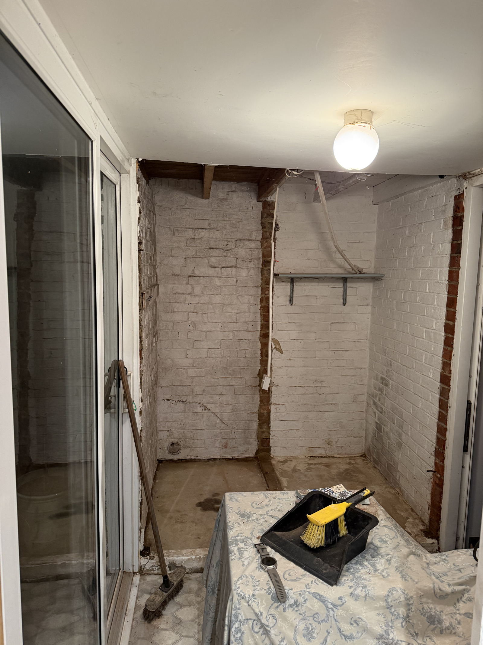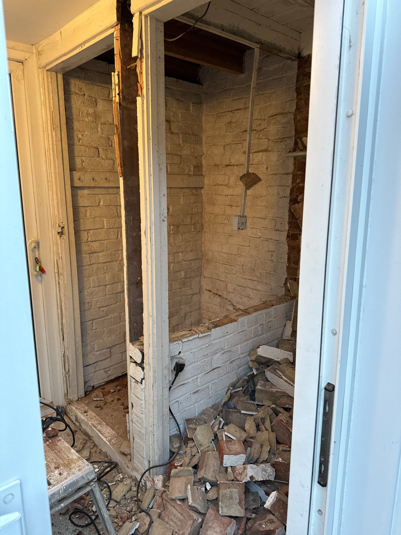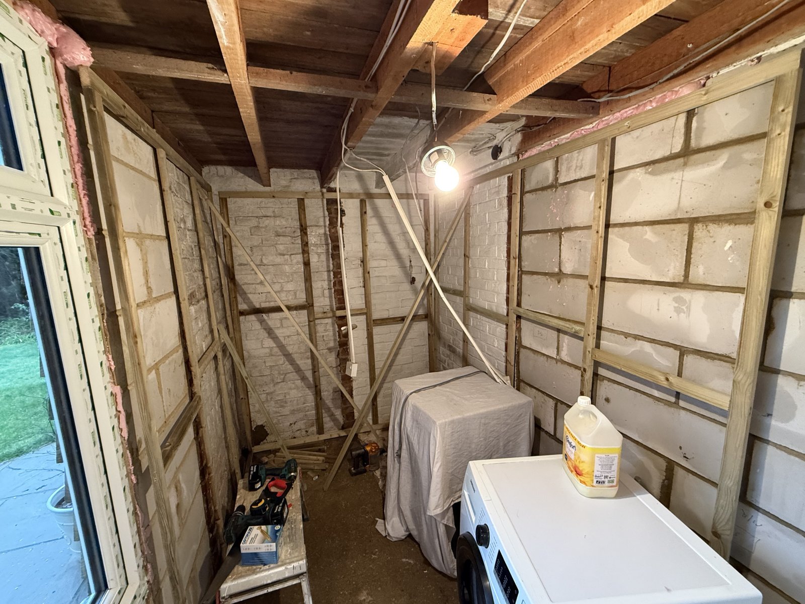 roof needs insulating too, but wall between the 2 old cupboards is not supporting so plan is to take that out as well. We don’t need a back door, so just a small window for ventilation (not sure the neighbours appreciate me stripping off after a run in there 😂)