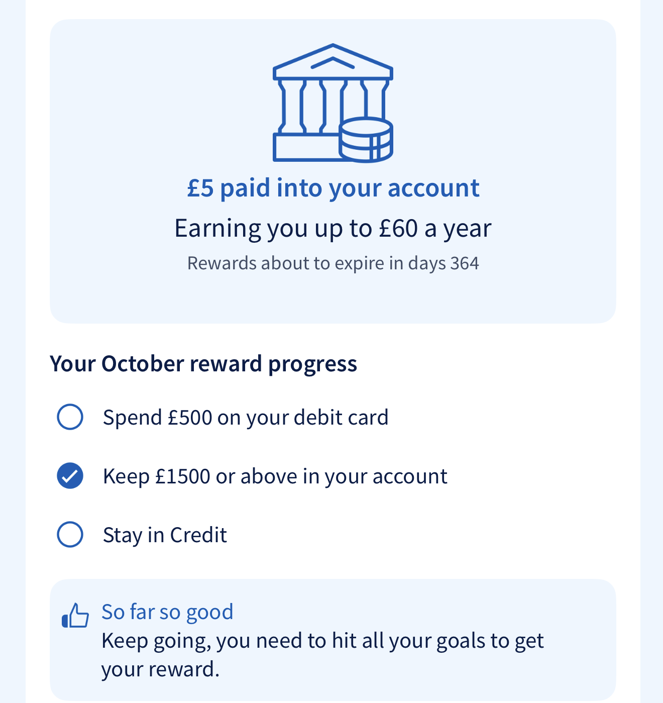 The older-style tracker information screenshot relates to September, by the looks of it."Keep £1500 or above in your account"