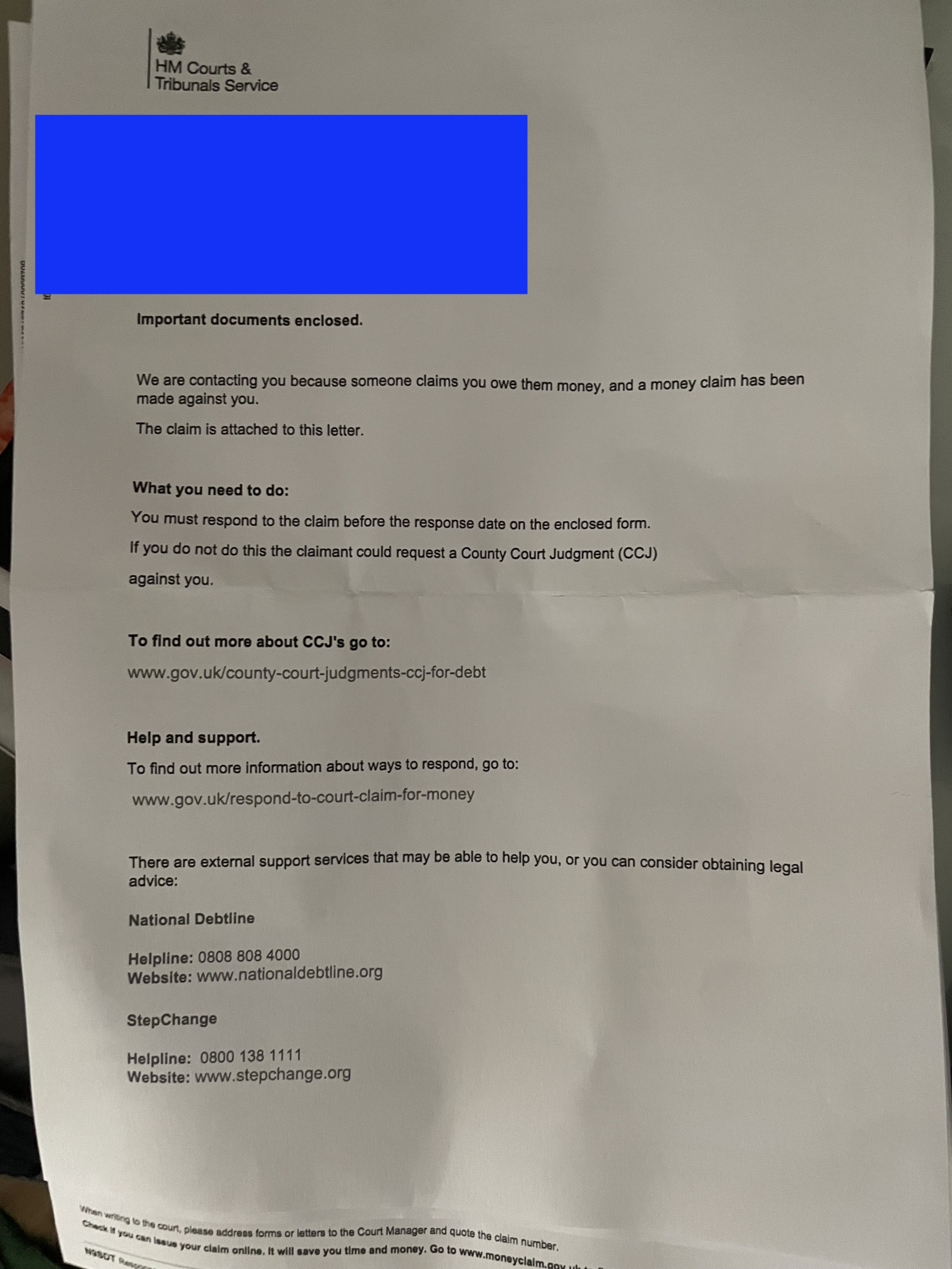 just follow the newbies thread its all part of a process , only a court claim nothing to worry about4