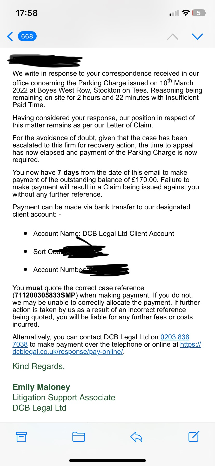 7 days notice IGNORE THEM, ( Smart parking via DCB Legal ) , for now !!1