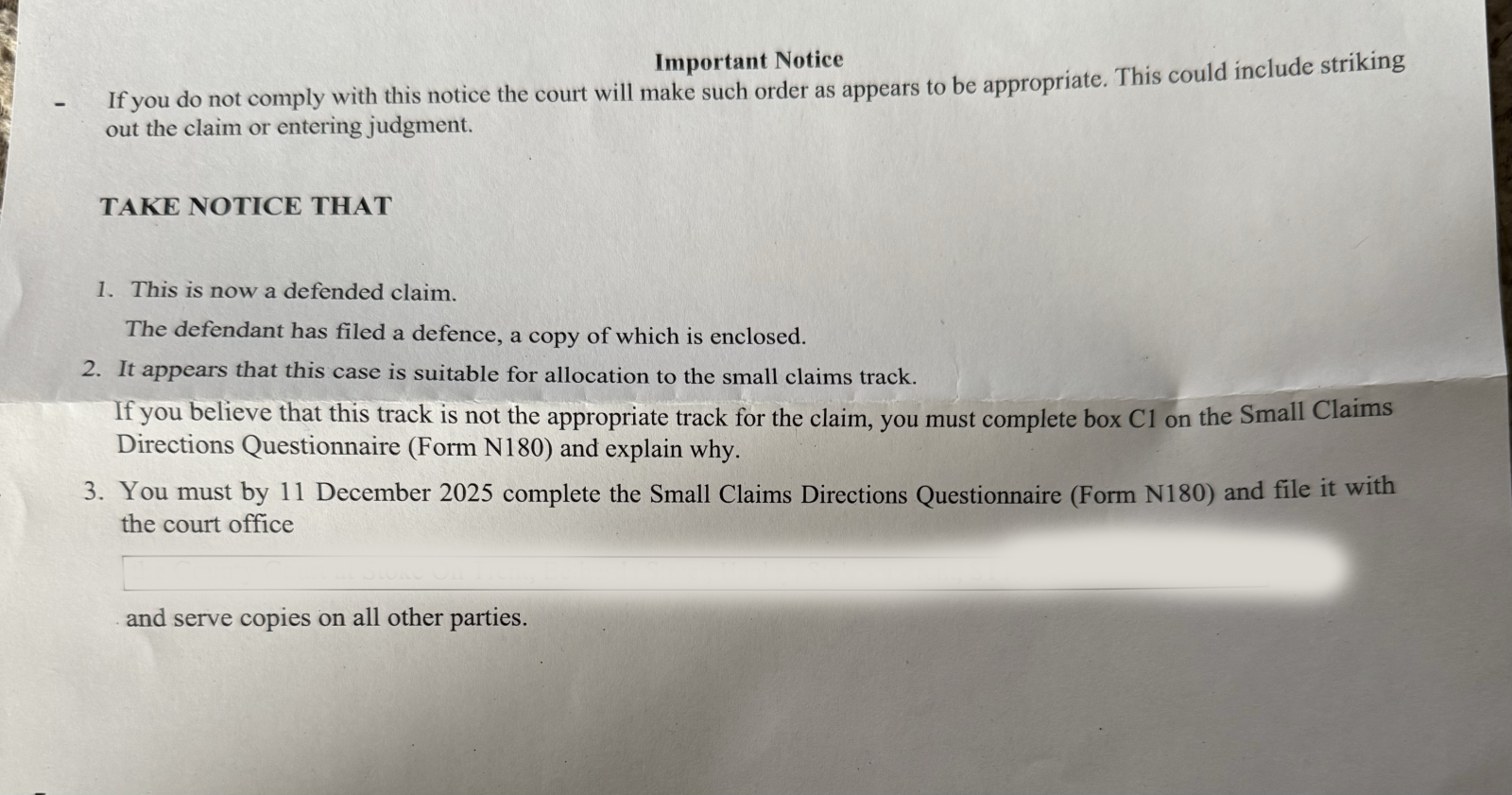 Just received this @Coupon-mad. I assume I just complete the N180 and send to the court and cc DCBL?