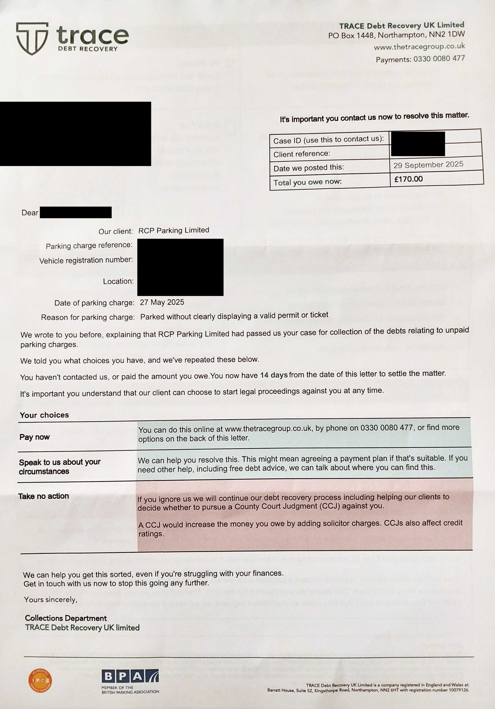 Coupon-mad said:Octonaught said:Returning to update with regards to this, having ignored the PCNs I am now receiving "robocalls" and texts from a debt recovery agency. Today I received 2 letters from them each demanding I pay £170, so now £340 in total.To save rereading the entire thread, this all because when I paid for my 2 days parking, the app autofilled my old car reg into the form and I failed to notice.