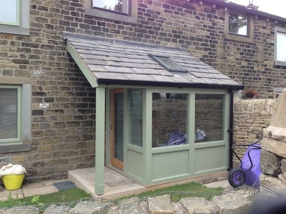 Hi dllive! Happy New Year!Blimey - I thought I'd deleted the pics I had of 'your' new porch, but it's still there causing me to sigh as a cracking project... *I do like your new ideas - stick a loo in there since you don't currently have one downstairs.The info required for 'conforming to regs' is all 'out there', but I'd suggest that 1.5m wide by even as little as 1m long should be very doable.Thoughts? You have it pretty much sorted. Yes, if there's room, then have the door opening inwards, simply so it doesn't get in the way of any chairs just outside. But, you need to check Build Regs, and the door may need to be the best part of 700mm wide, which means a very limiting ~300mm for the basin.Only other observations - why have a window above the basin, when you have a wide one to the front? Just extra expense, as far as I can see.*