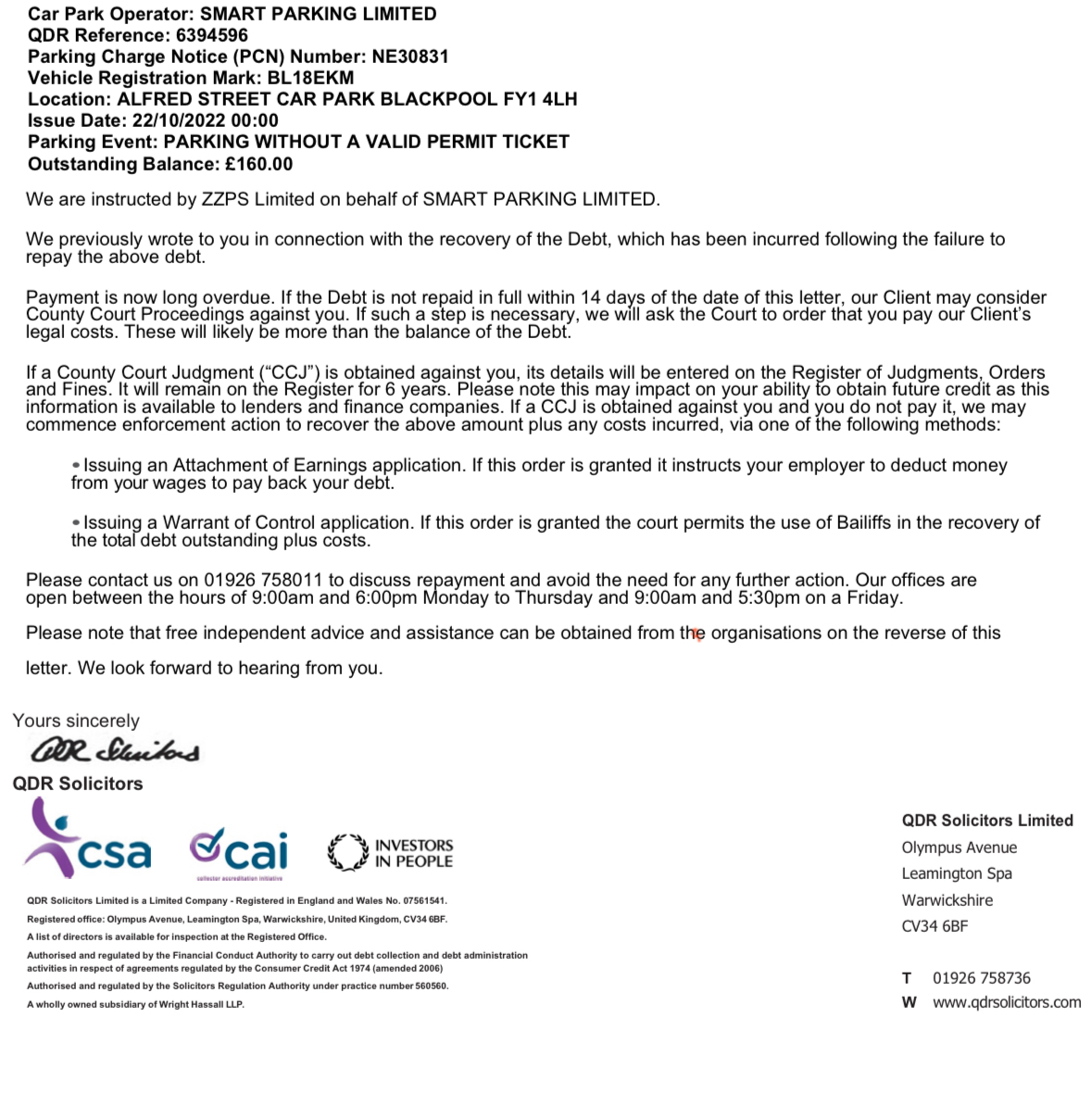 Bradley91 said:Hi everyone, I have now received another letter from QDR solicitors stating I need to pay within 14 days. Shall I ignore this letter too? Here’s a screen shot