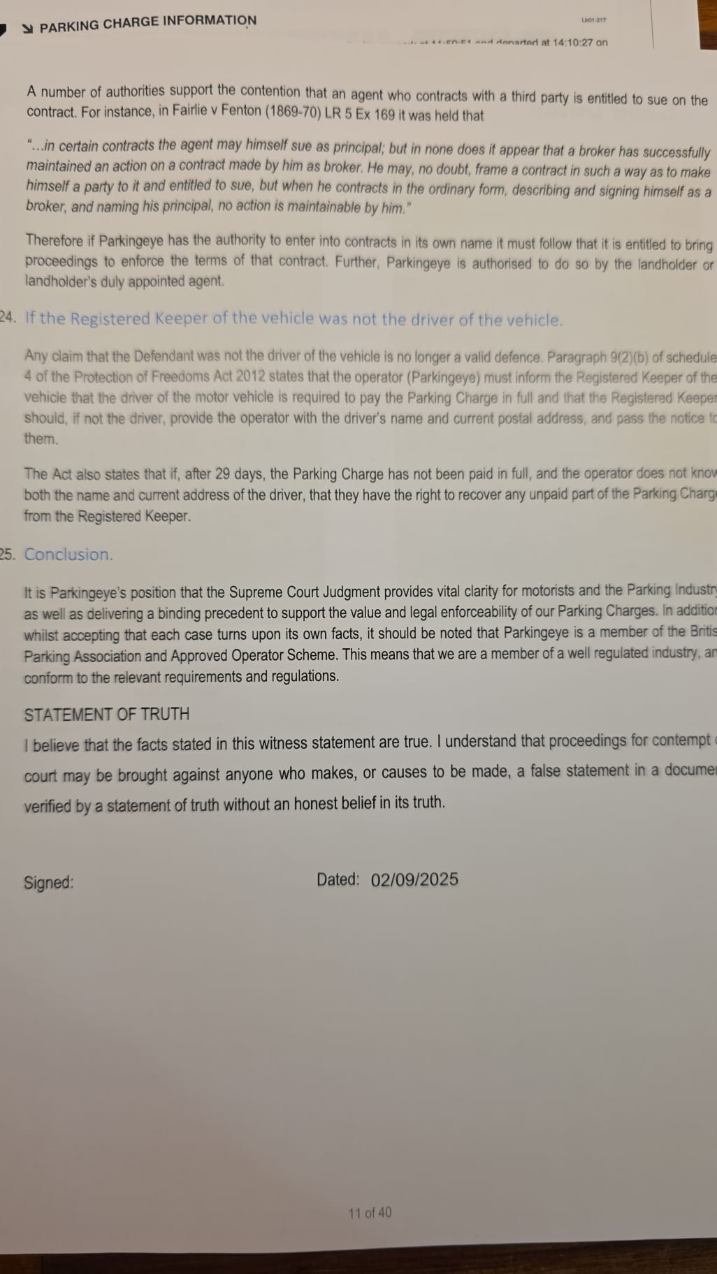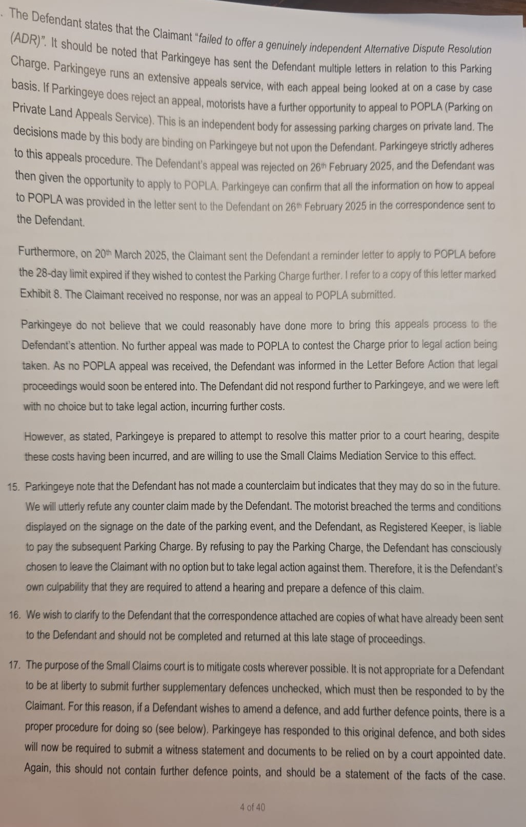 I had one other question regarding the grace period. The claim seems to be for an overstay of 10 mins, however, checking the BPA code of practice allows for a grace period of 10 mins. My defence doesn't mention the grace period, should I update it to include reference to this?