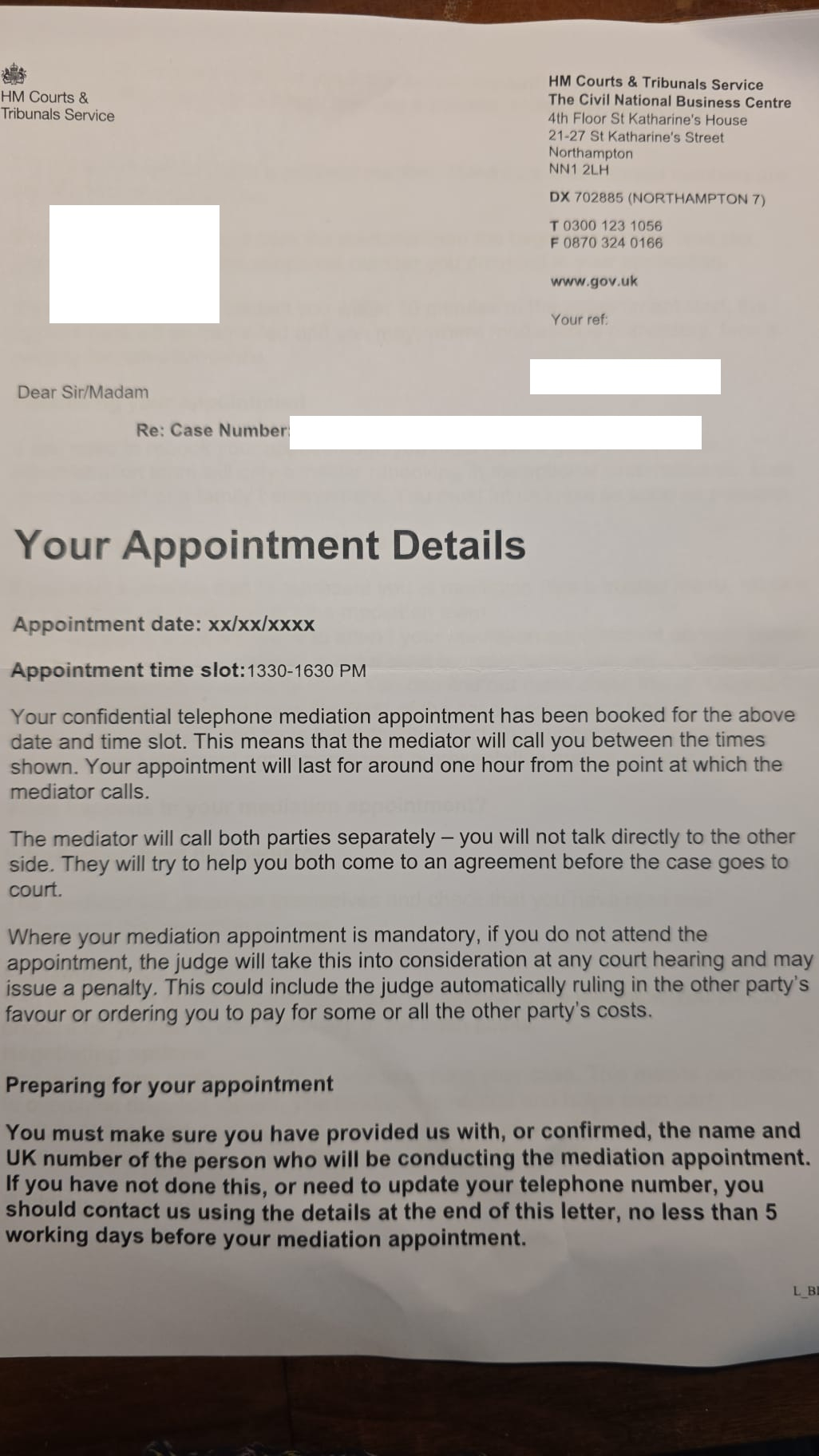 Also, received the mediation letter, but the date on it hasnt been entered!
