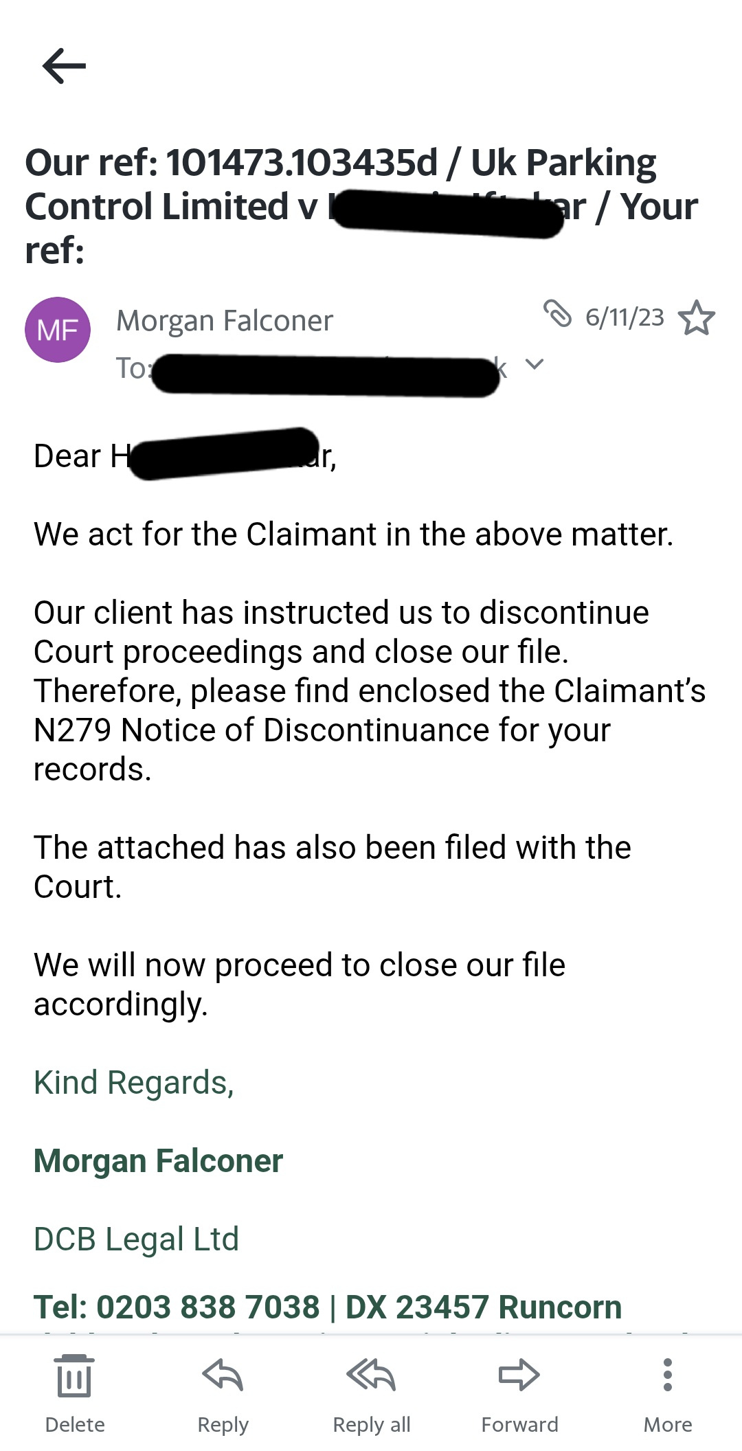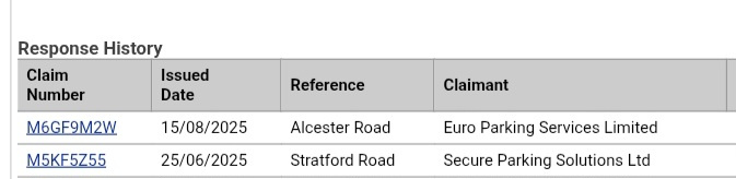 One was with Secure Parking, represented by DCB Legal. They discontinued before court.