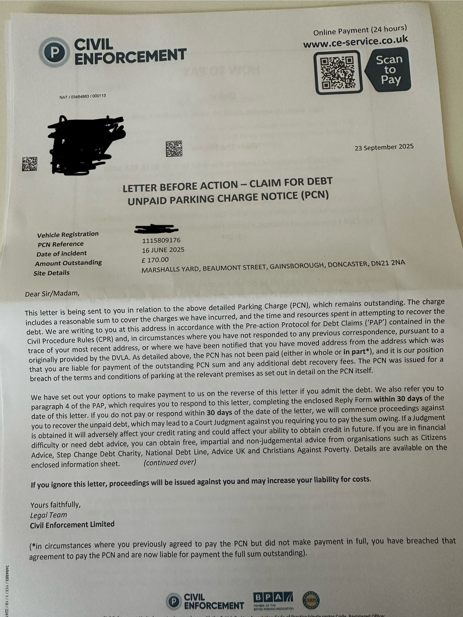But that's what you want.LBC stage is covered in post 2 of the NEWBIES thread.PRIVATE 'PCN'? DON'T PAY BUT DON'T IGNORE IT (except N.Ireland).