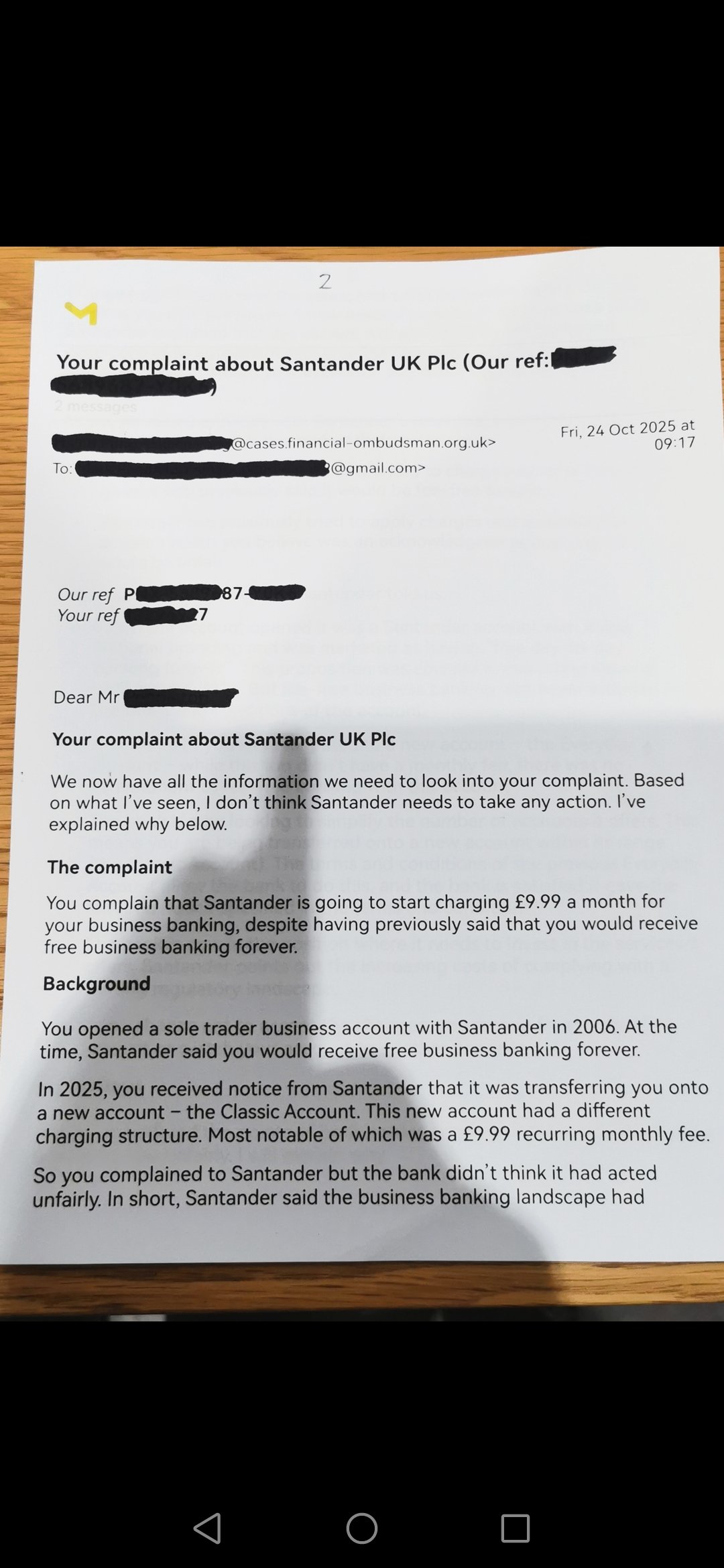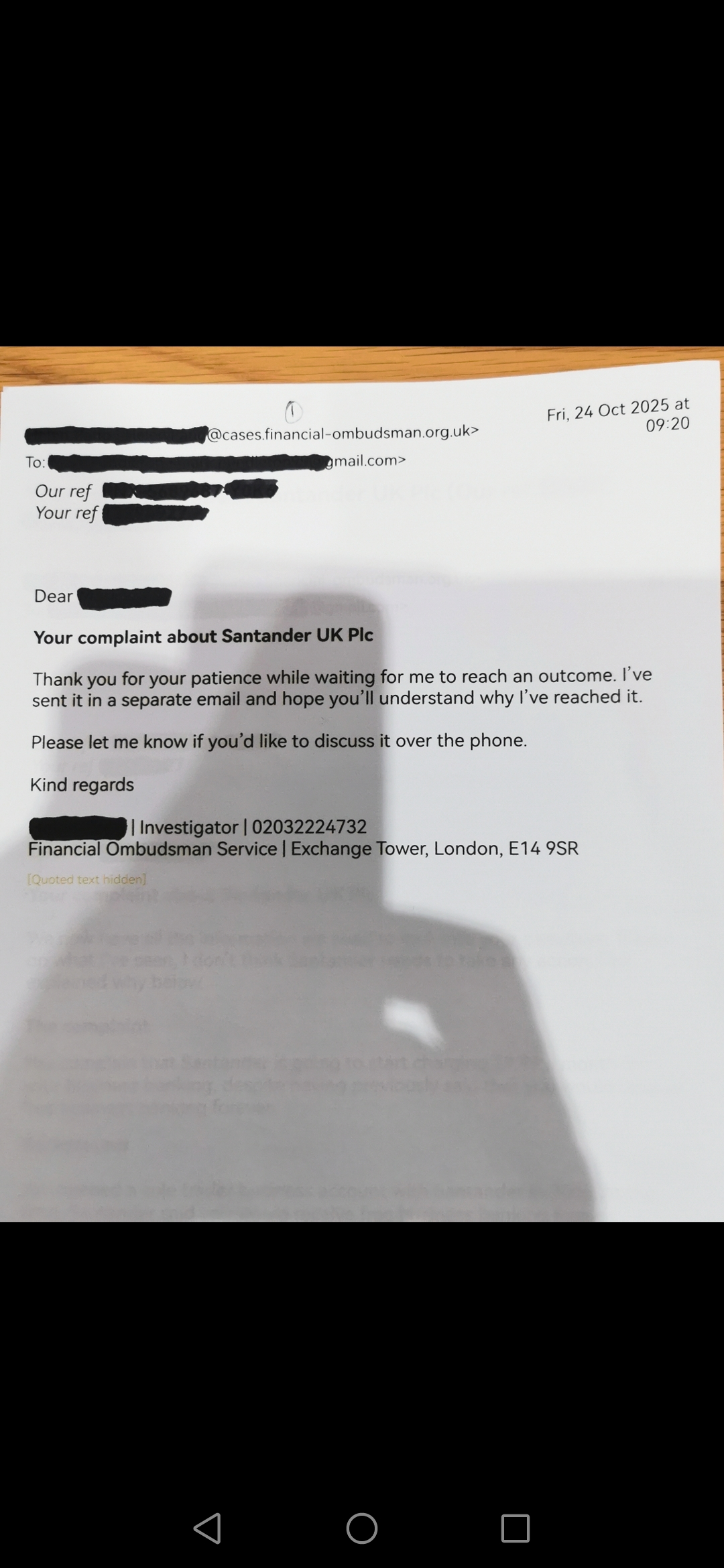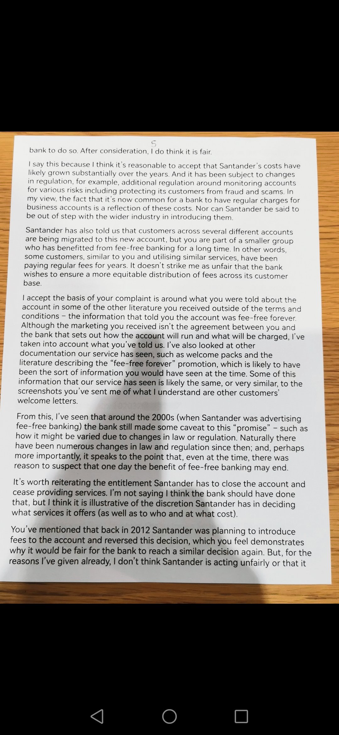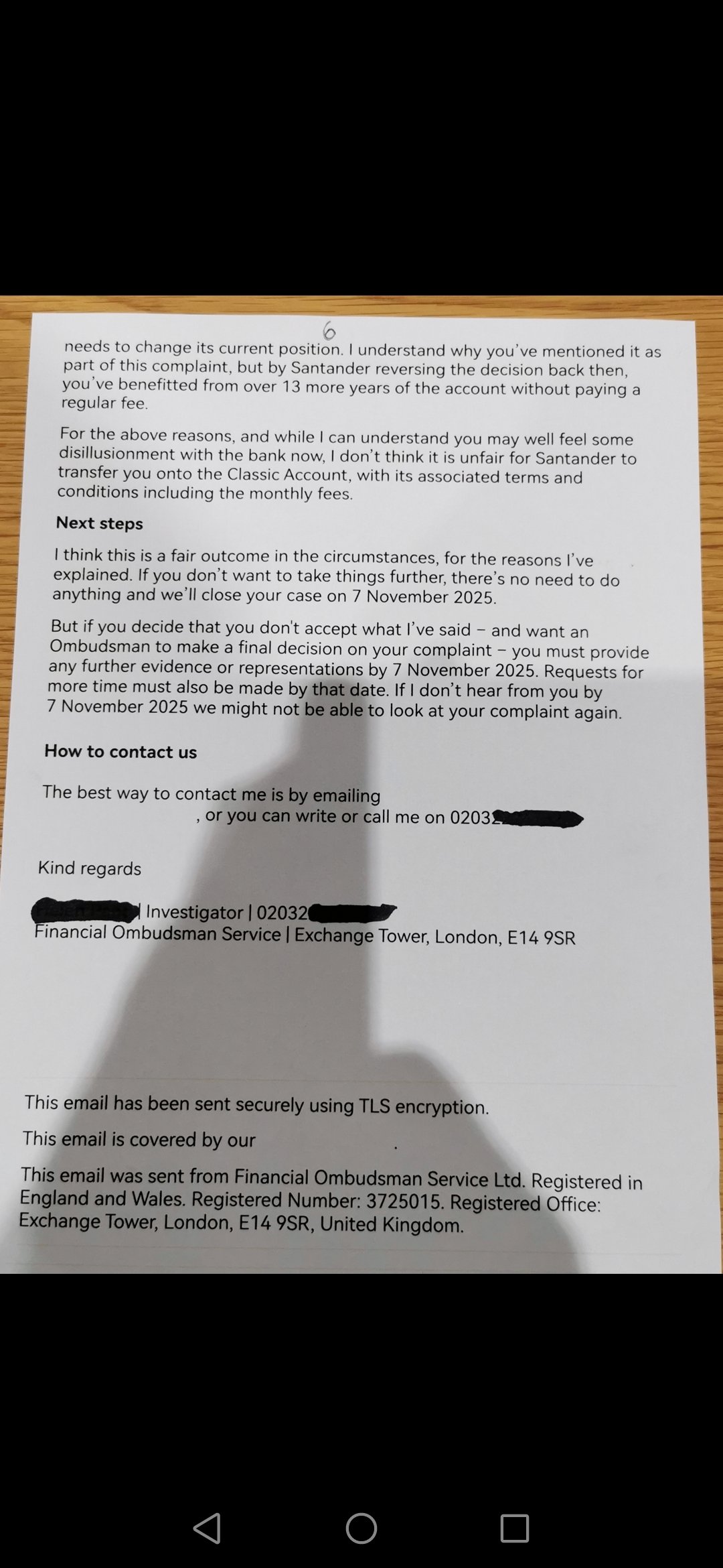 Perhaps post a pic of letter (personal details redacted) might stop the another not real post 👍Carpetbeetle999 said:Hi everyone, quick update. I've received my final response from the FOS at 9.20 this morning and they are siding with Satander. It's a pretty long winded email which goes into the reasons why and I won't bore you with the details surfice to say it's more or less the same statement as the first person who posted about their final response. As I've said on here, I was always in it for the long run but I had a feeling it wasn't going to go our way so opened a Virgin account last week and will be doing the transfer over at the weekend. As previously mentioned I think I was one of the first to go to the ombudsman in mid July so I'd expect that everyone will be hearing from the FOS immently.