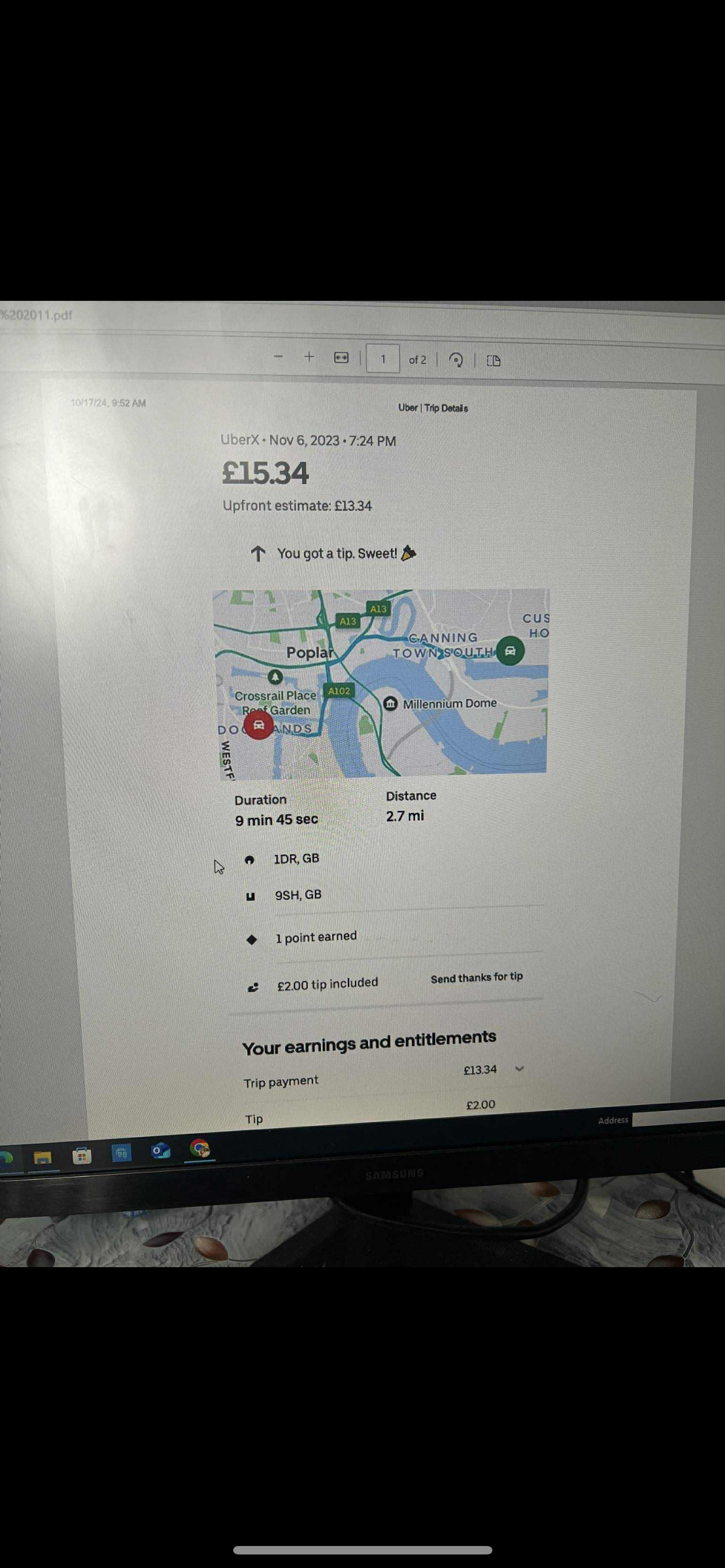 hi good morning I have attached all documents . I went to pick up rider 2 times in Excel area E14 post code .