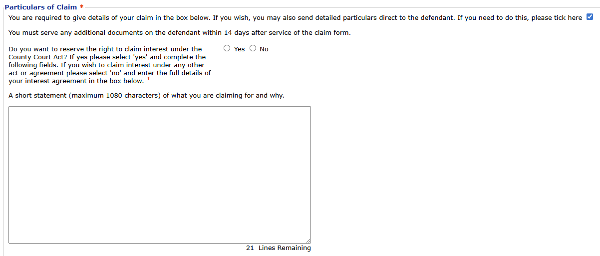 Ok, this is fine. I have already sent the Letter Before Action (LBA) to the defendants, so they are fully aware of what is coming and there should be no confusion about what I am seeking. That’s why I wasn’t worried about the tick-box option, as I chose not to use it since the LBA was already issued.
