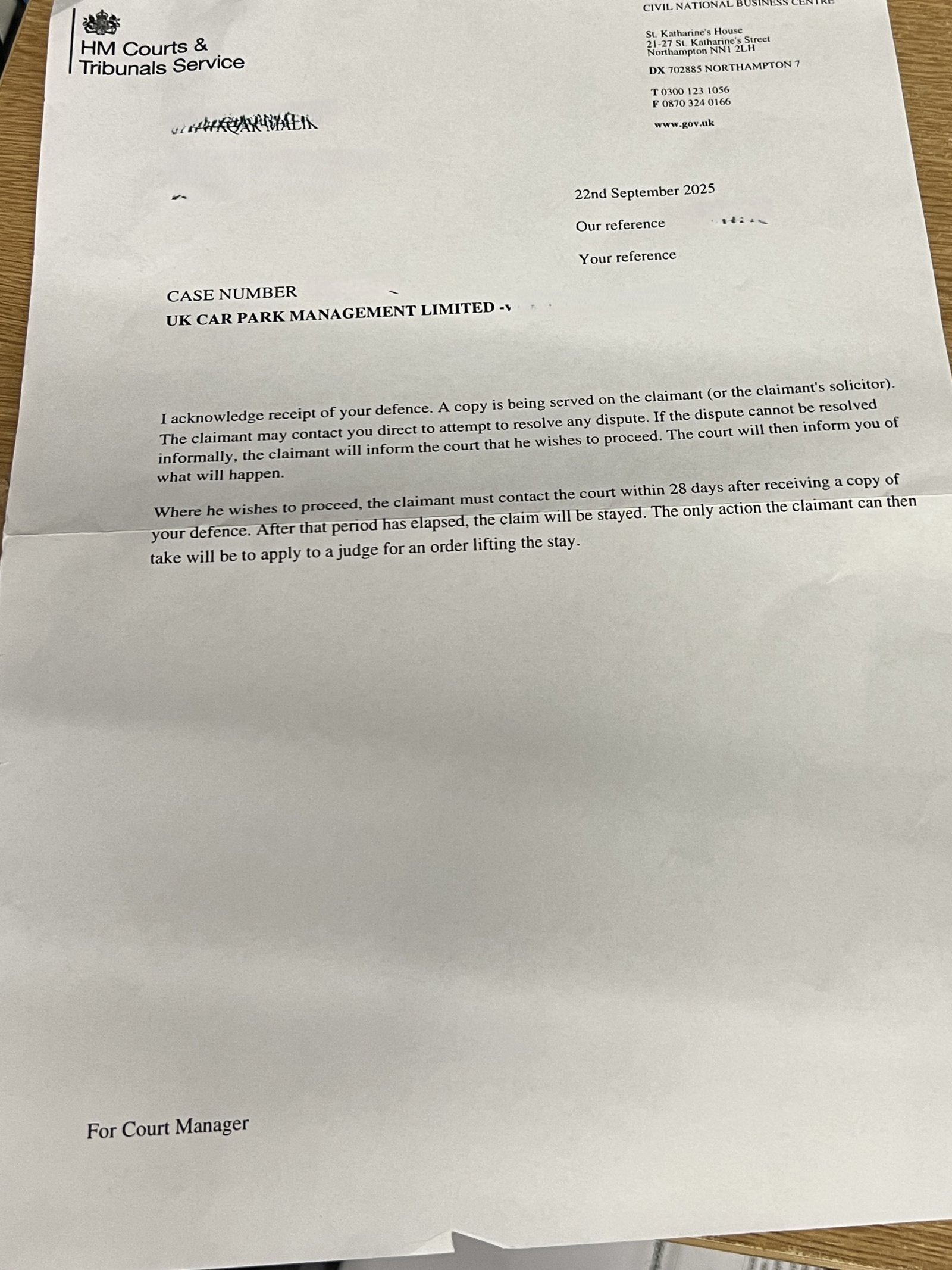Right. As explained in the 8 steps!PRIVATE 'PCN'? DON'T PAY BUT DON'T IGNORE IT (except N.Ireland).