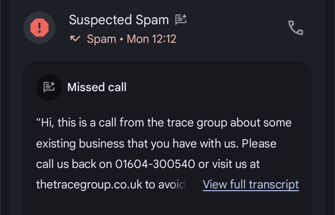 OP, I agree with C-m - anything like a debt collector should be told - "I will only accept contact in writing, assuming your staff can actually write."Coupon-mad said:I don't think Trace call people. If they do, tell them to write only.