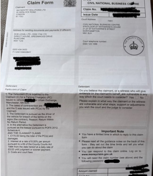 Coupon-mad said:Hello. I received a claim because i visited a car park in Ancoats Manchester which allows 90 min of free parking. I stayed approx 35 min and left. However i realised i must have left my phone perhaps in one of the shops. I went back 5 min later and stayed aprox 15 min before I left the car park. I am now getting a county court claim from DCB Legal.I stayed less than the free 90 min but I came back less than an hour to look for a lost item.Any advise on how I can defend this.So would I defend that it wasn’t the same driver?