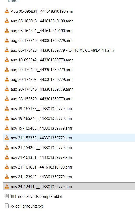 When i made calls to Halfords branch and customers service in July this year, i did not have ability to record calls, i do have them all recorded since the 6th of Aug.