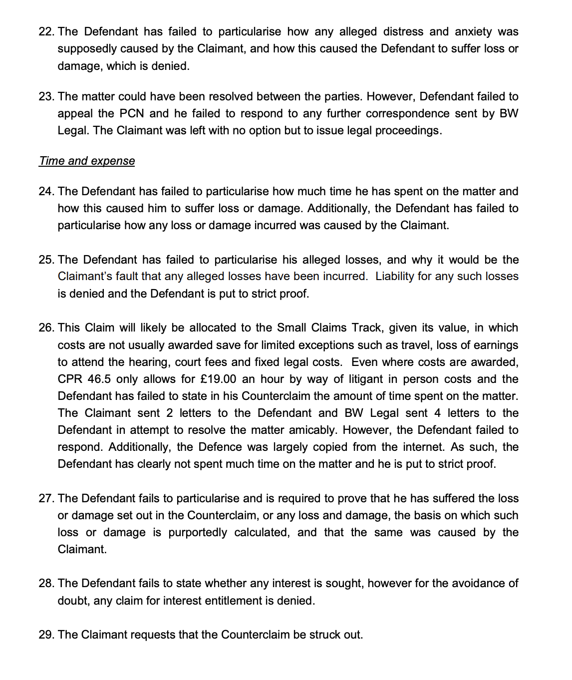 Show us some excerpts from the Defence to Counterclaim. Who wrote it, a BW Legal paralegal or an employee of the Claimant?PRIVATE 'PCN'? DON'T PAY BUT DON'T IGNORE IT (except N.Ireland).