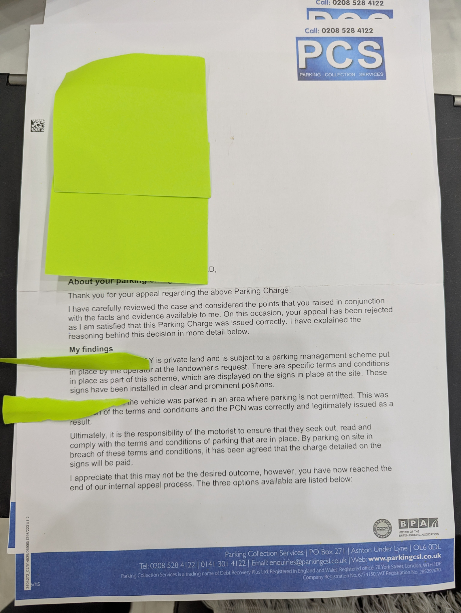 PCS have now issued the photos which were never on the website when they sent me the inital letter. It shows the car was there for 6 and a half minutes0