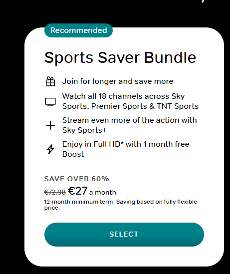 Can anyone explain why the Sports Saver Bundle in Ireland (which includes both Sky Sports and TNT Sports for around £23 per month) is actually cheaper than the UK 12-Month Saver deal (which only includes Sky Sports at £28 per month)?