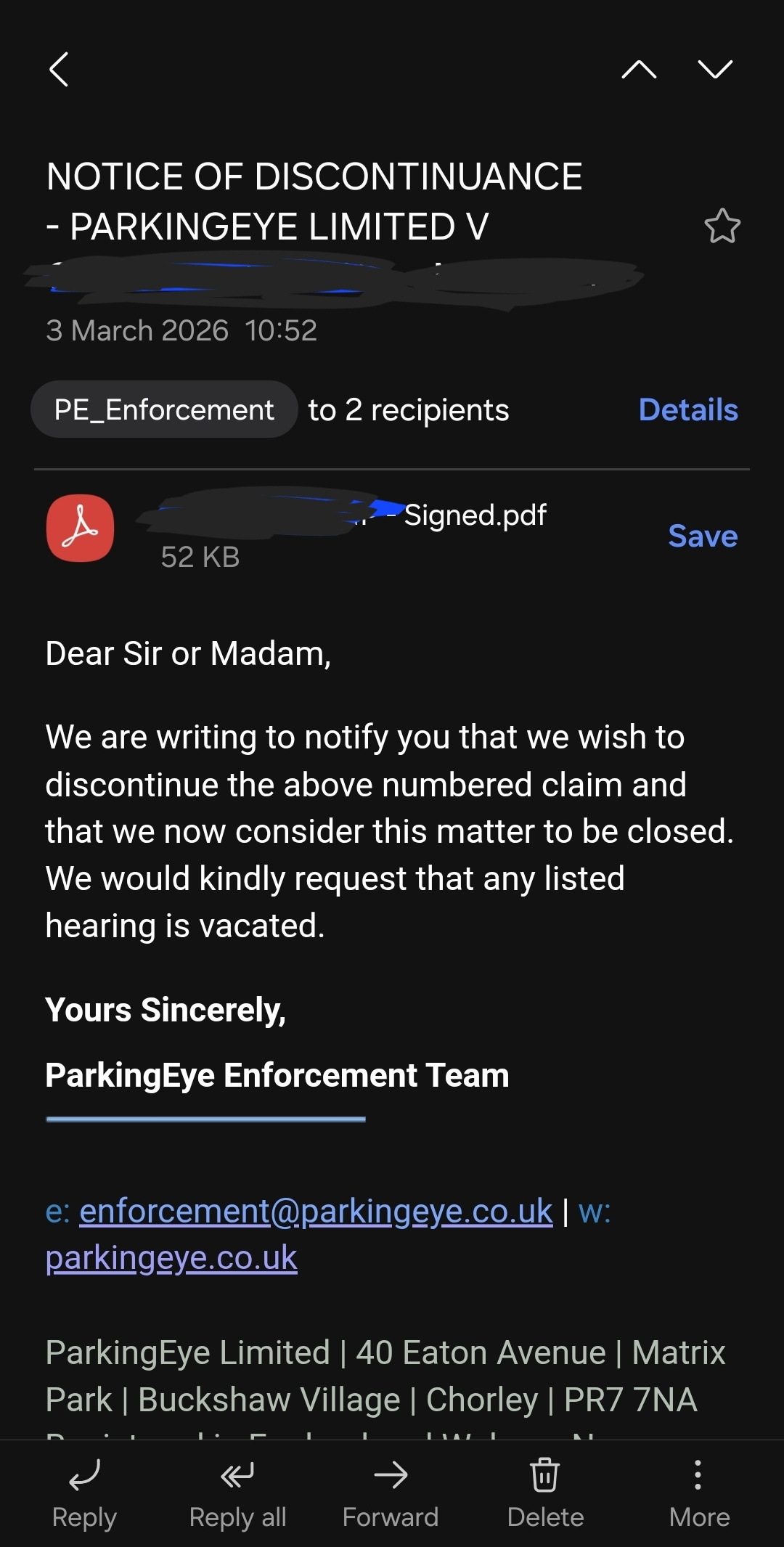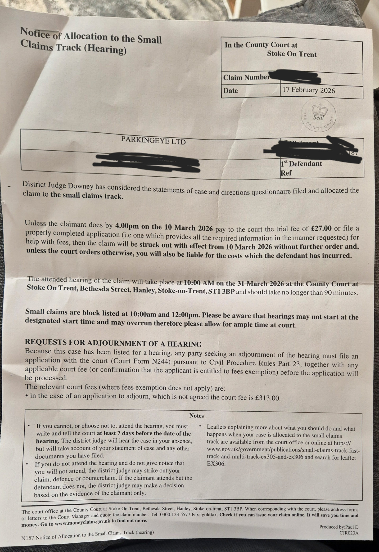 But can you show us the full Order by DJ Downey from 2 weeks ago please? Sounds like ParkingEye were ordered to do something specific and have wussed out.PRIVATE 'PCN'? DON'T PAY BUT DON'T IGNORE IT (except N.Ireland).