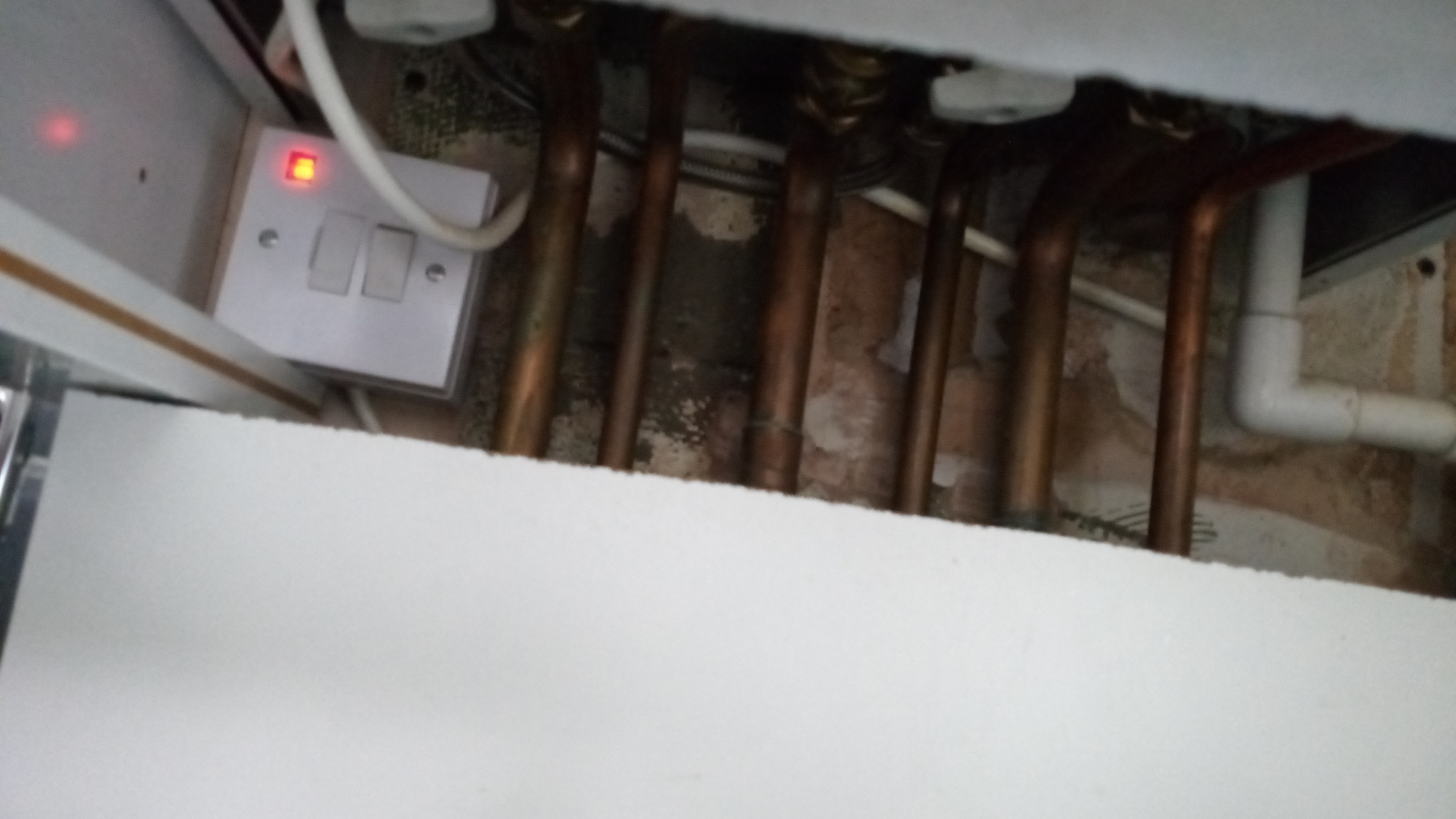 That far right 22mm copper pipe will be the return - that's where the filter should go. Does that white lower panel remove?Depending on the plumbing layout, the filter could be elsewhere - that return pipe doesn't appear anywhere else, does it? In the base unit under the worktop, for example?