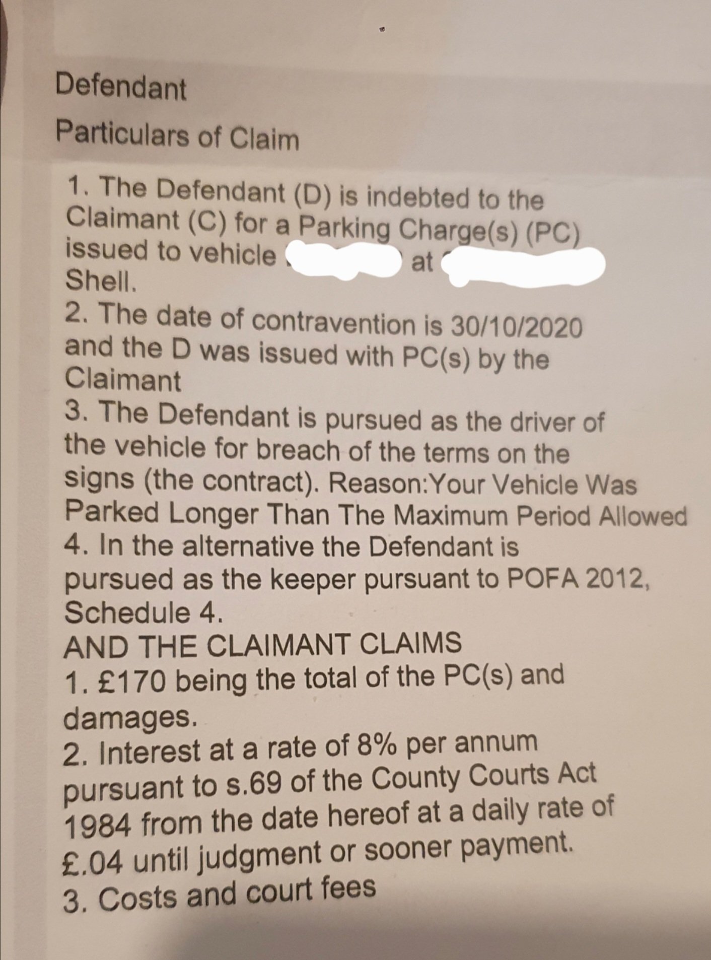 Received claim form from euro car parks/dcb legal ltd - at defence stage