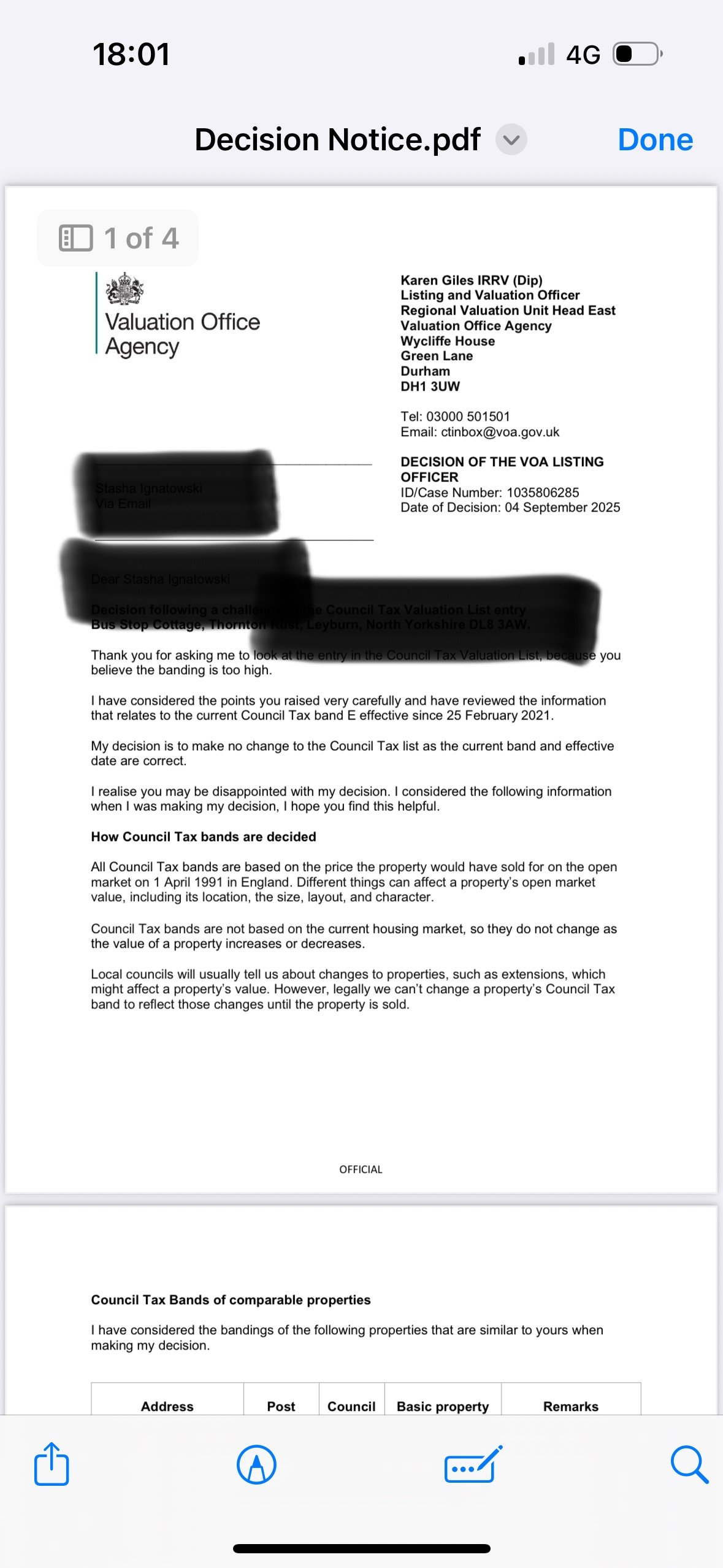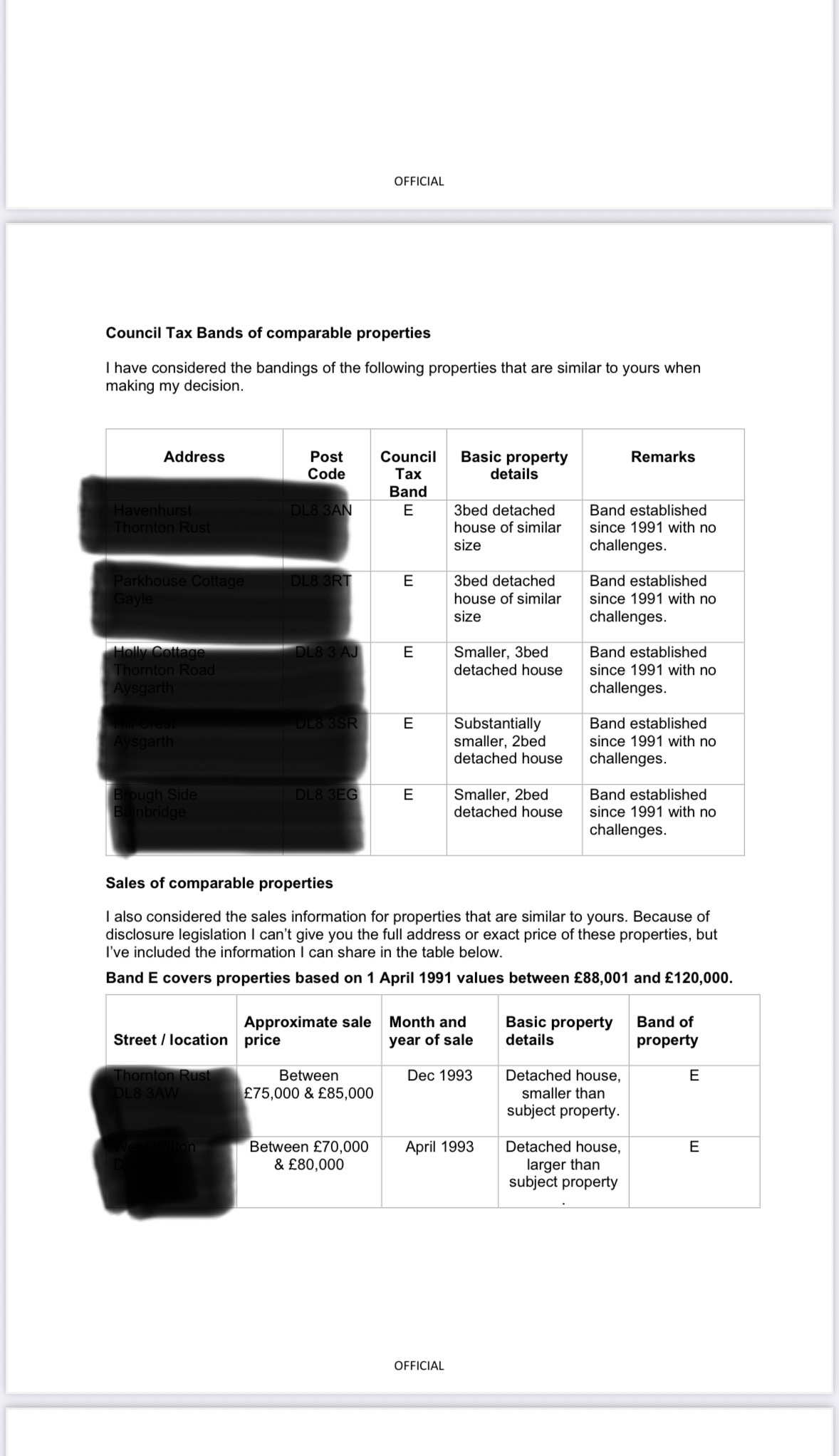 I will upload it now, thank you.Ah, I see. If I can’t get enough evidence of detached houses in my village (due to a lack of them) I will create spreadsheets for surrounding villages and use those too. I know they have provided 5 properties as their evidence but I would feel more confident with as many as possible for my evidence.According to the estate agents all Yorkshire Dales villages are sought after but who knows!That’s interesting as my letter states I have three months from the date of the decision letter to appeal? Unless it’s just my lack of understanding of the process!0