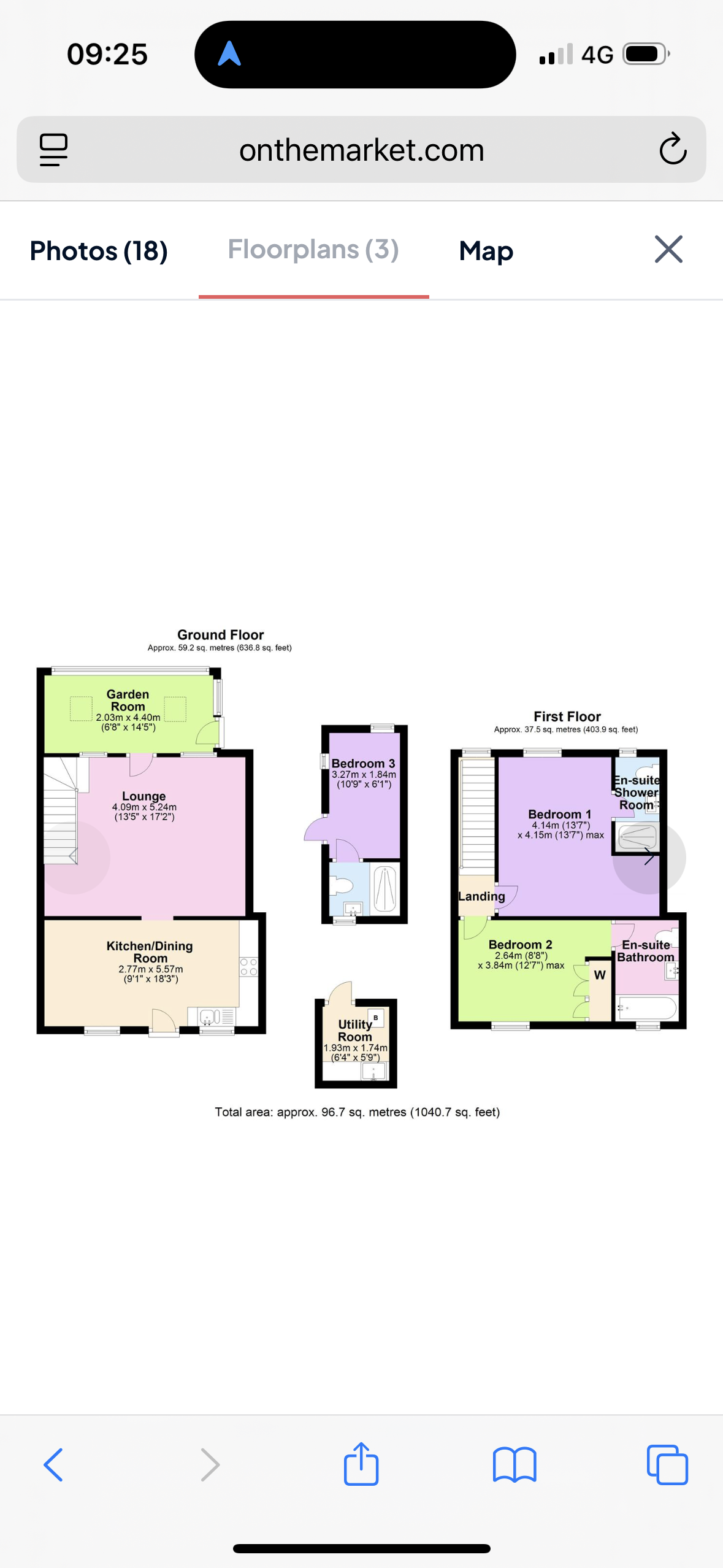 Just another thought (sorry), the internal measurement of 96.7 sq m includes the external outbuilding (it was dressed for sale as a single bedroom) and boiler room . The house itself is 87.69 sq m internally (including the extension/garden room).