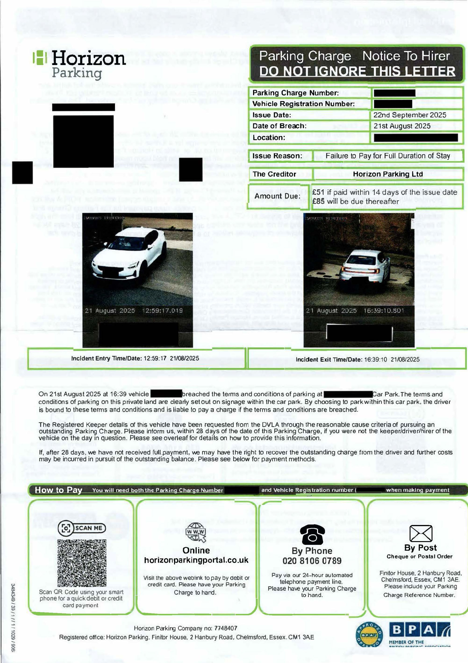 I have today received the PCN from Horizon Parking. It is now a "Notice to Hirer" - see images at the bottom of this post.