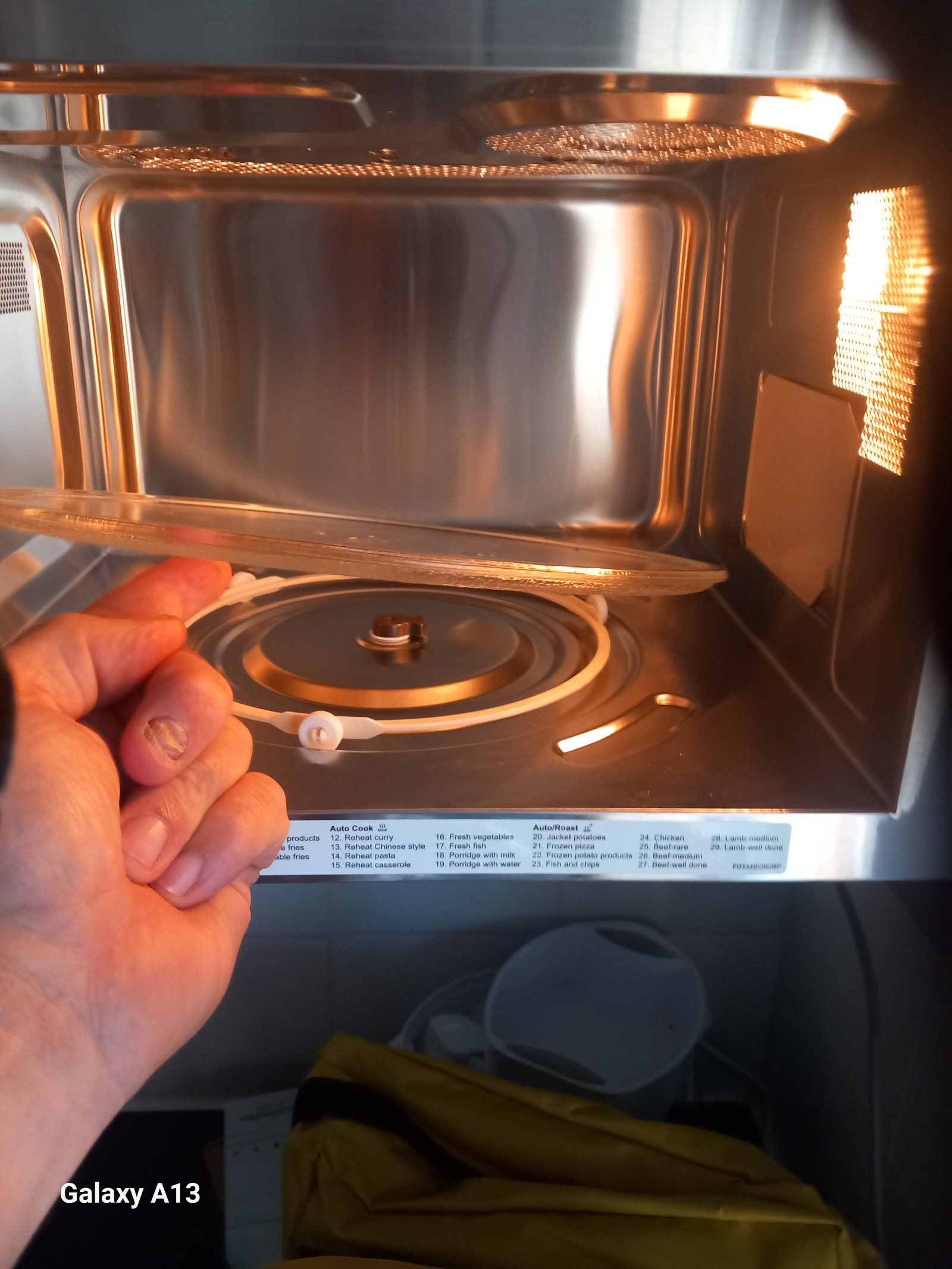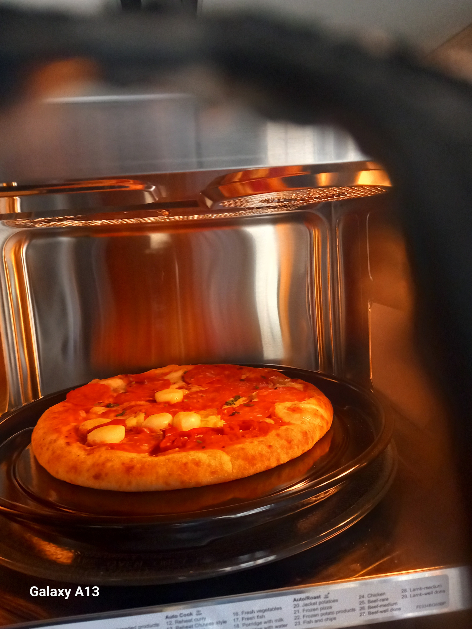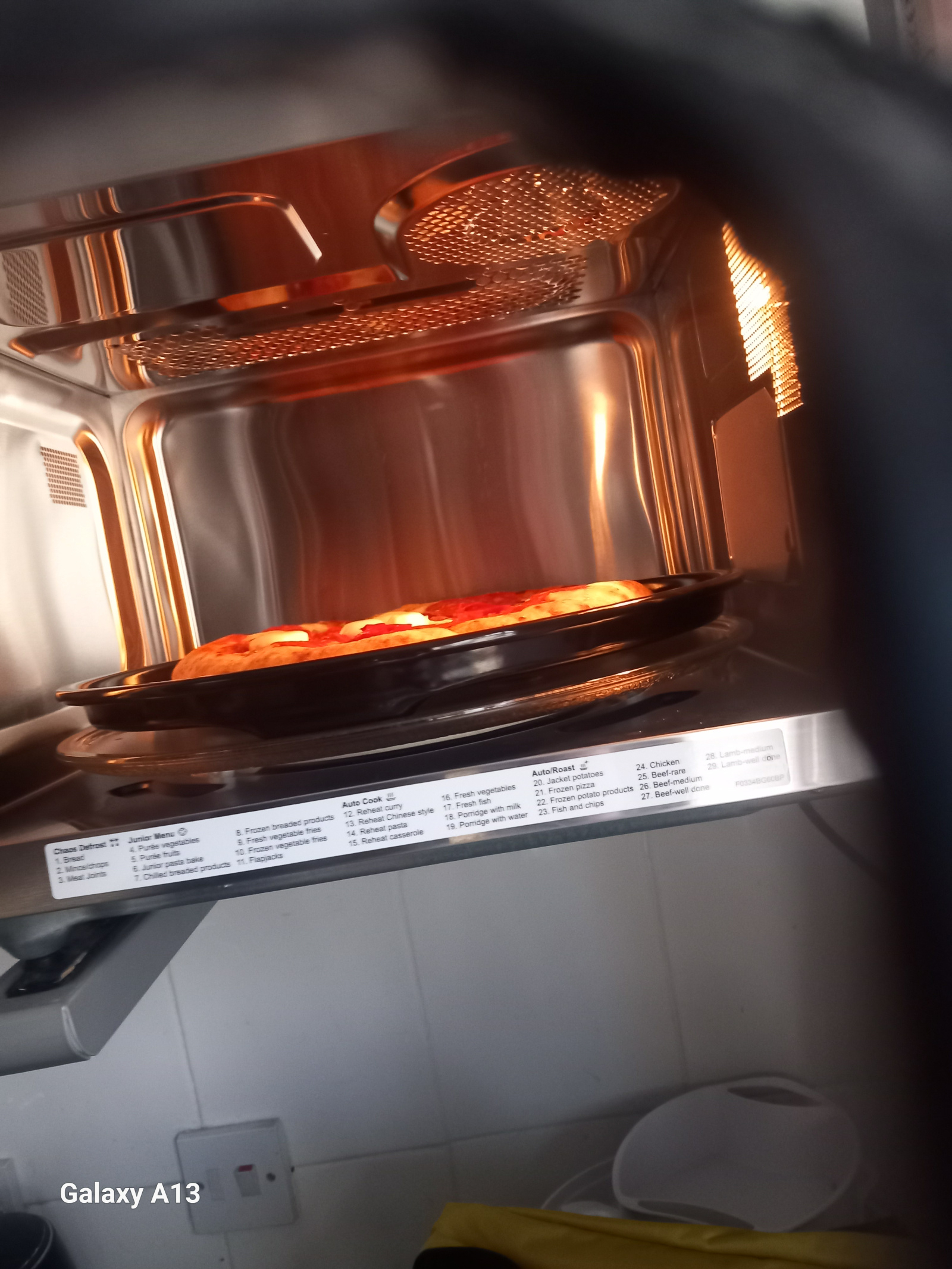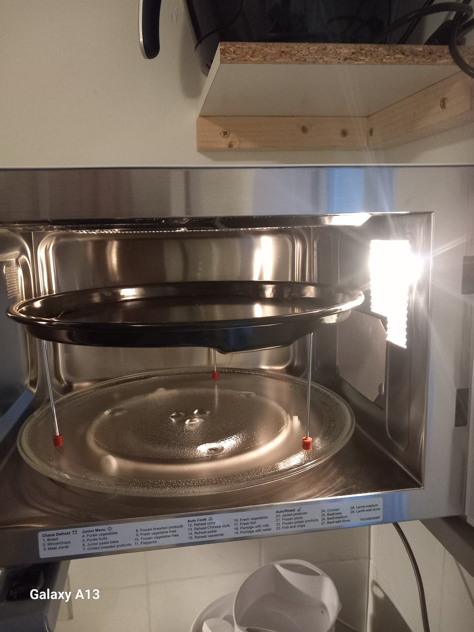 He recommended a microwave plate thing from Asda or somewhere to cook pizzas, chicken nuggets etc on when using convection setting