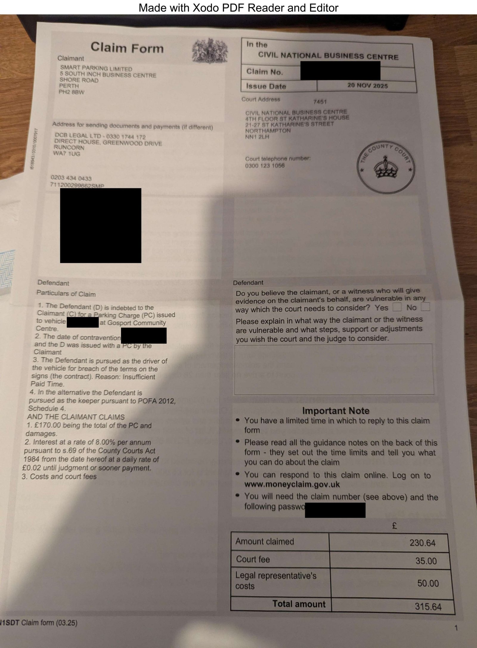 Court claim has arrived now. I'll start drafting the defence from the other smart parking cases after doing the AoS.