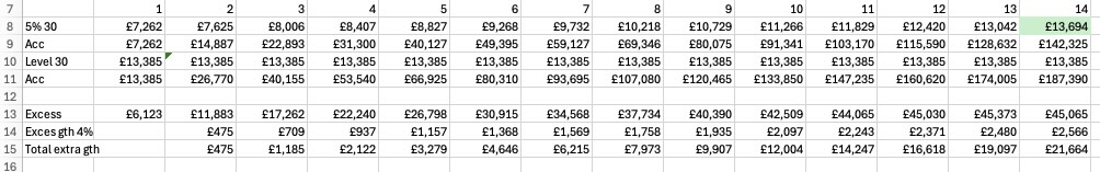 @ukdw, would you be happy to share your calcs/spreadsheet for the level vs. 5% comparison?0