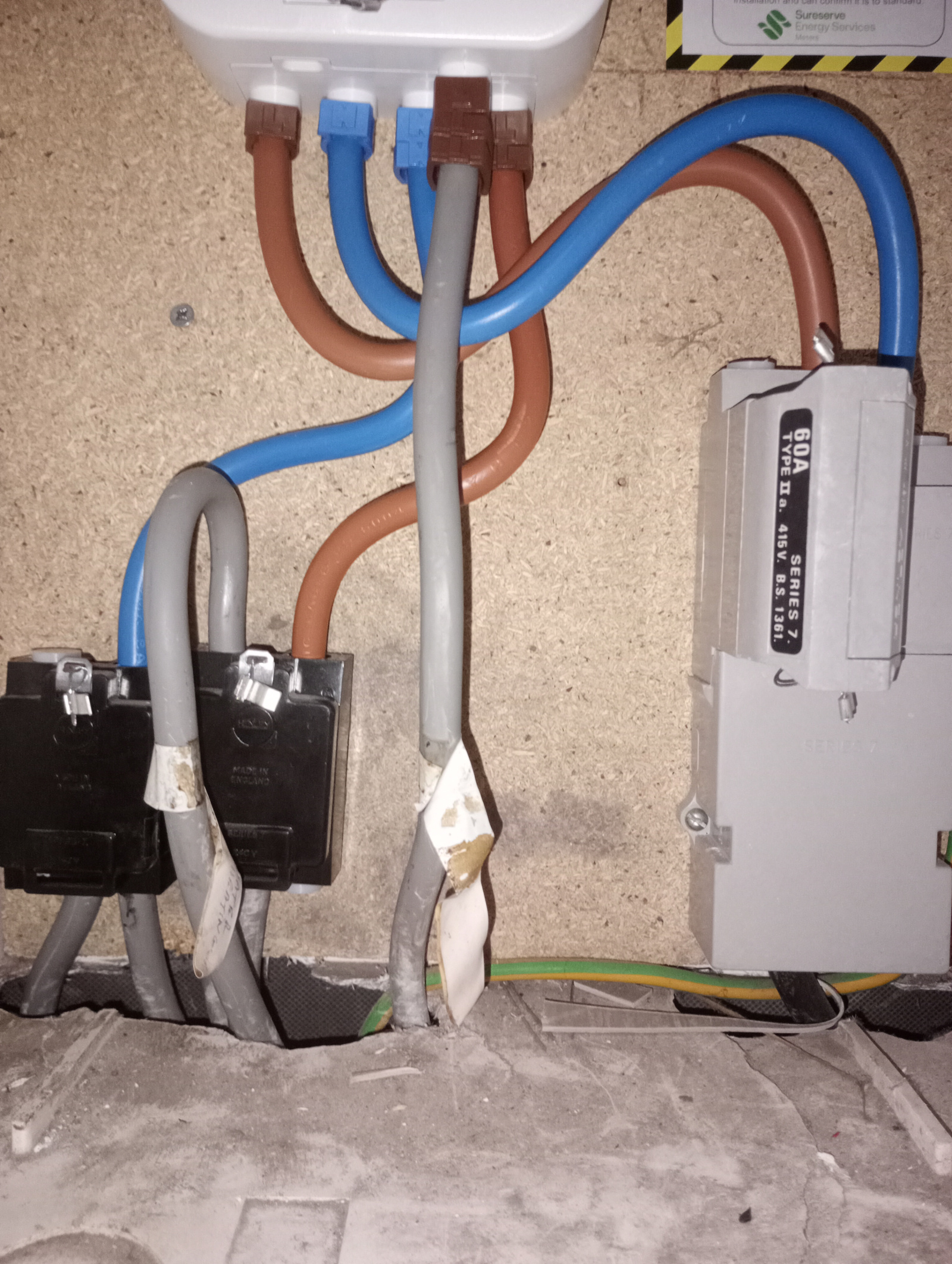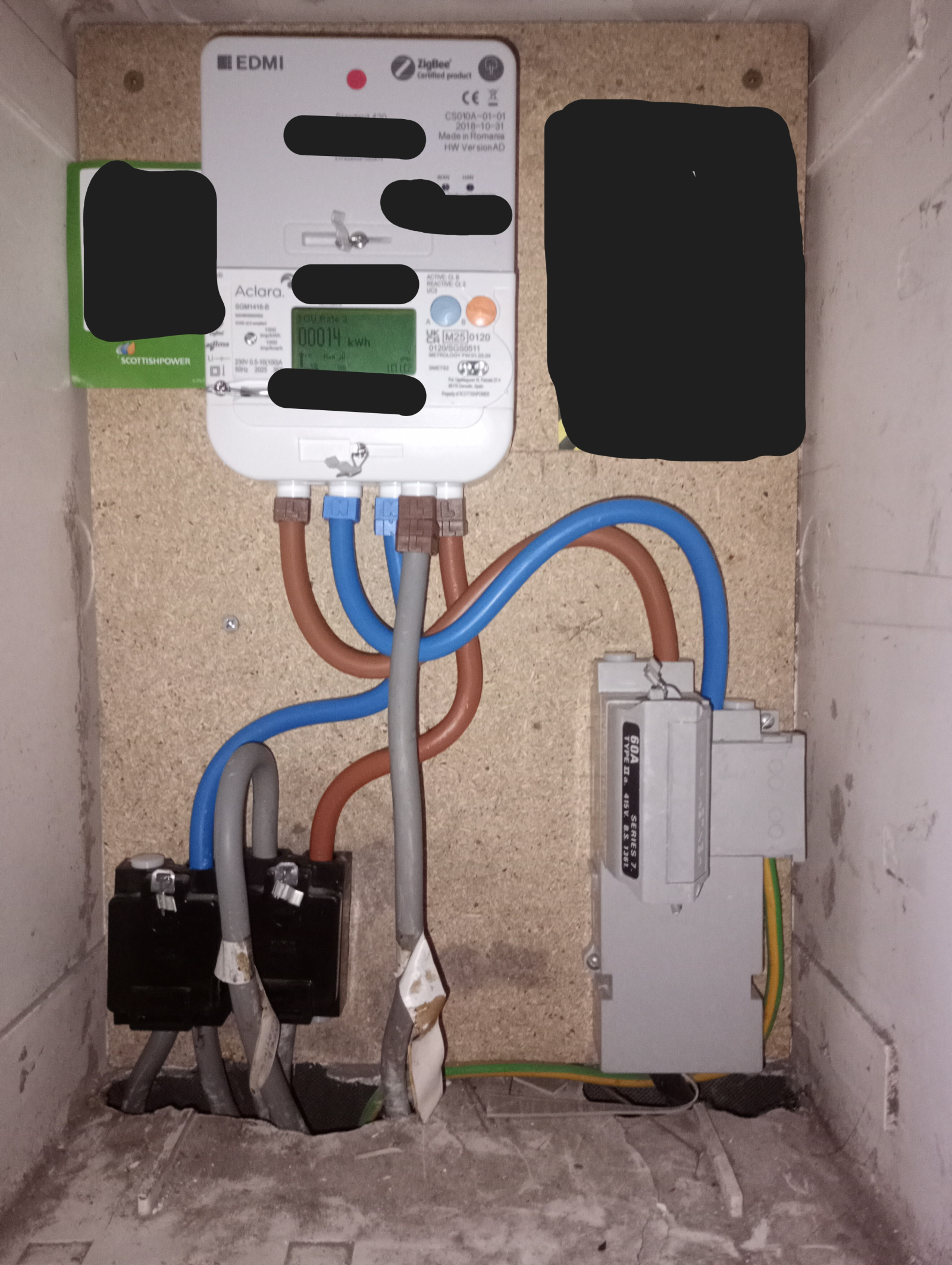 Whist it was almost impossible to see all the original tails leaving the meter cabinet from the picture of before the Smart Meter installation, it did look as though there was 5, and this is confirmed by the picture post smart meter install.