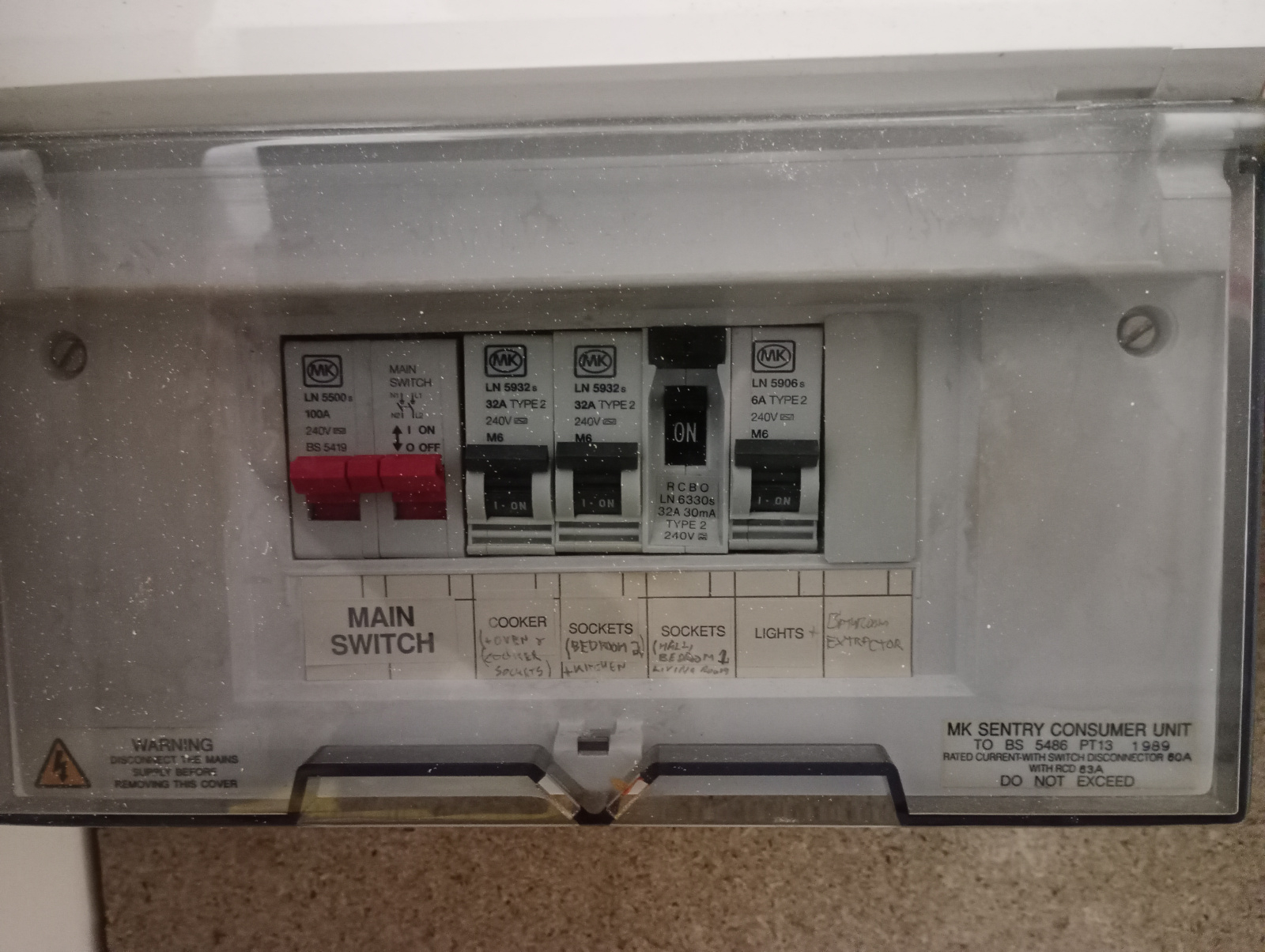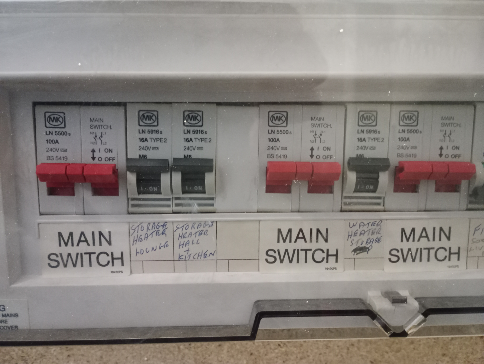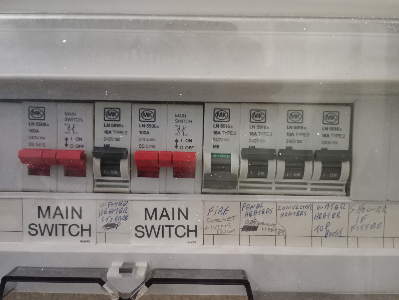 Ignore the first main switch here (see previous). The second main switch ran the 24hr heating circuit which was also metered by meter 2(comfort rate). Everything controlled by this main switch is still available 24hrs but now on time of use rates.