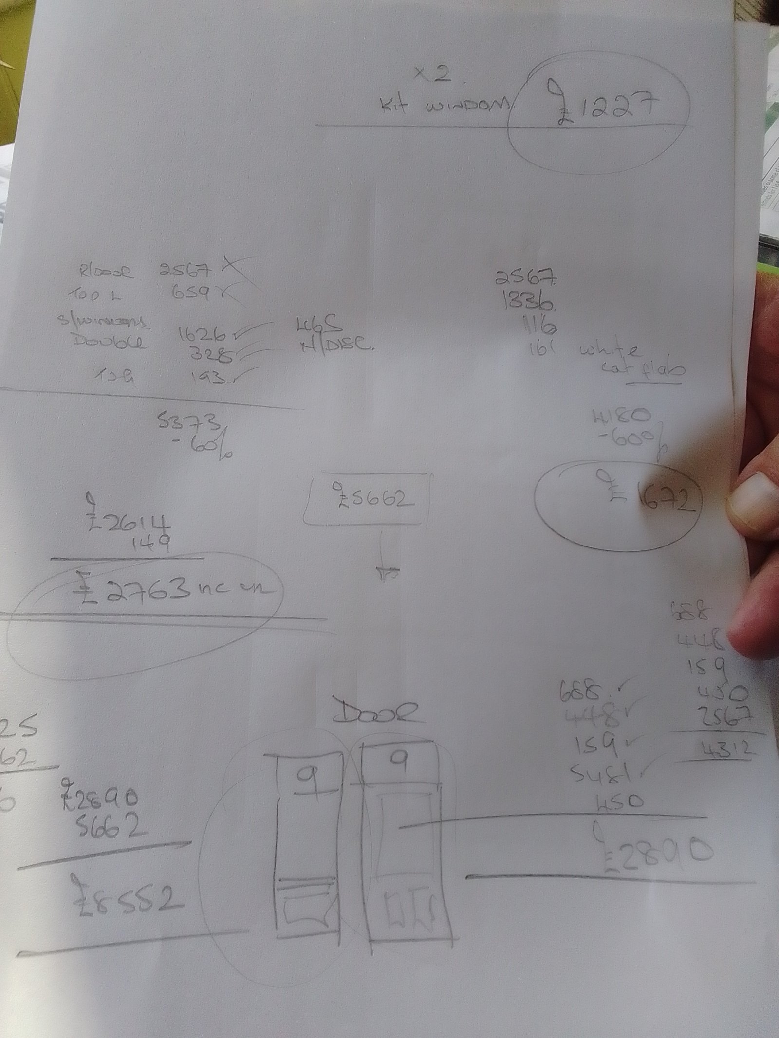 In the end, and after a couple more people came to quote, I measured up my window and door sizes and took them to a company and asked them to price them while I waited. The balance of power shifts when you can walk away at any time. The first price they quoted me was just over £10k, knowing full well that they wanted £10k and the extra few hundred pounds were there for knocking off. So that would be my advice, go to them, don't let them invade you!Some people don't exaggerate........... They just remember big!1
