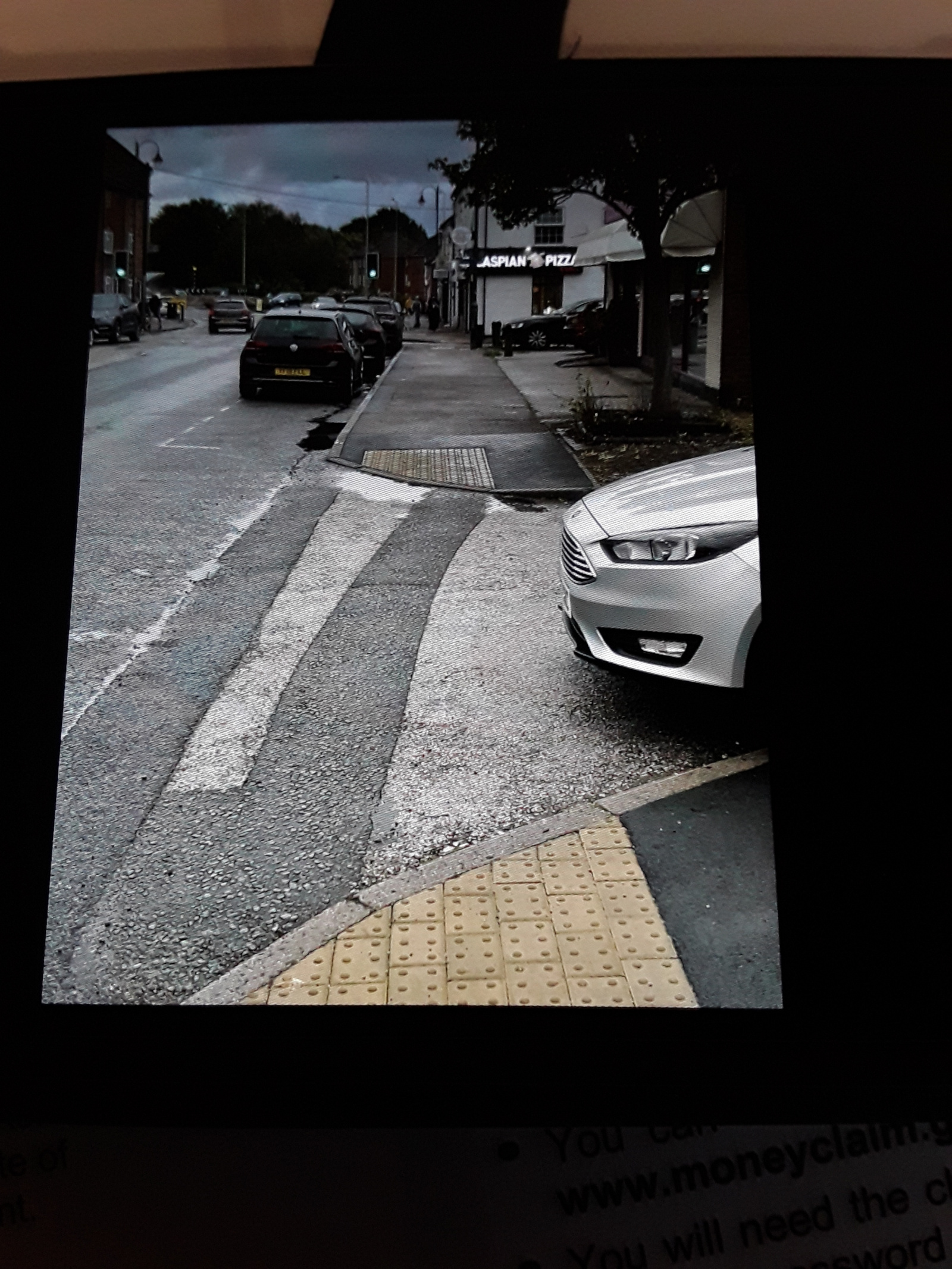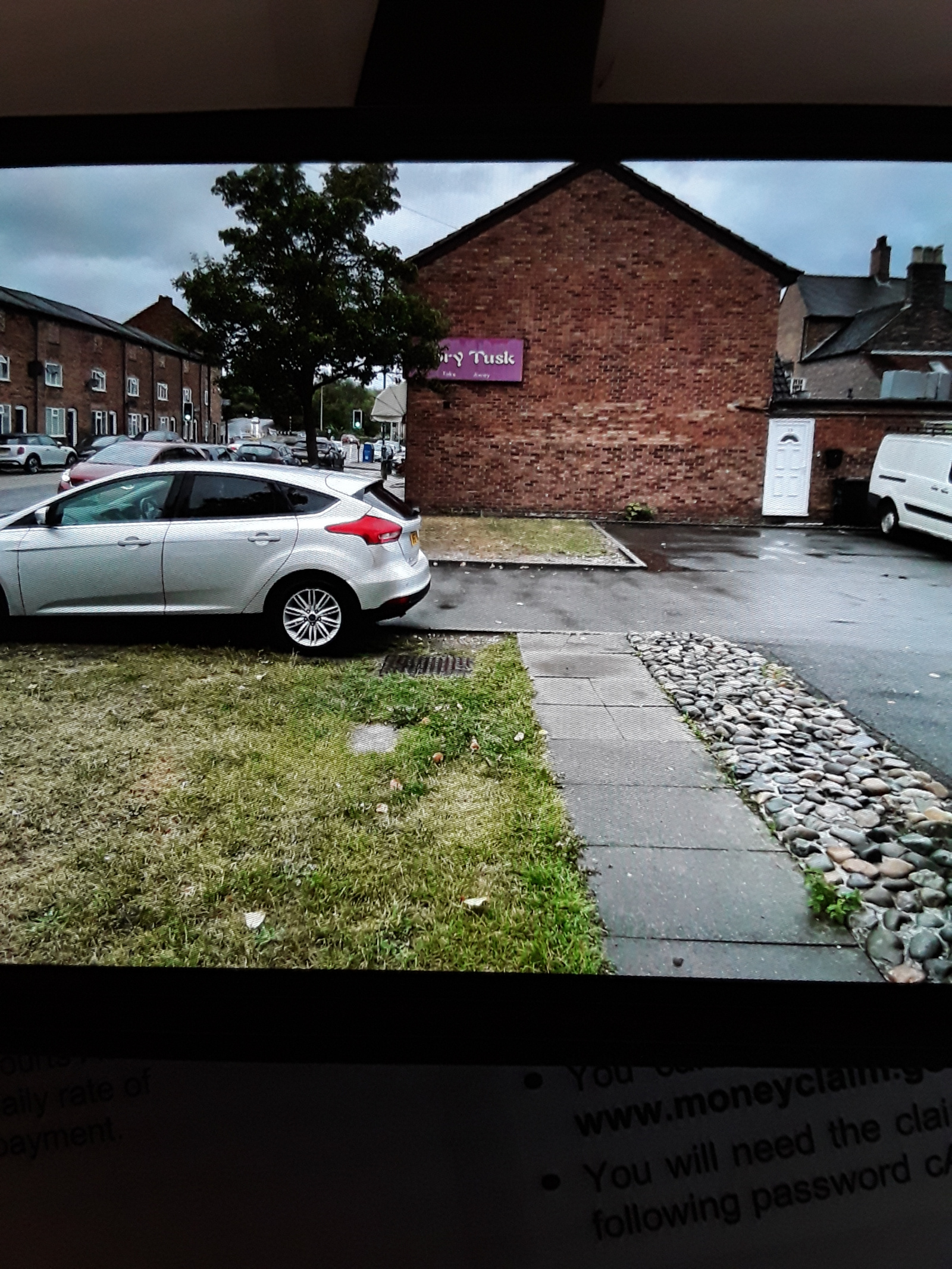 I attach a photo of the PoC and a couple of the parked vehicle in relation to signs and boundary that the driver took.