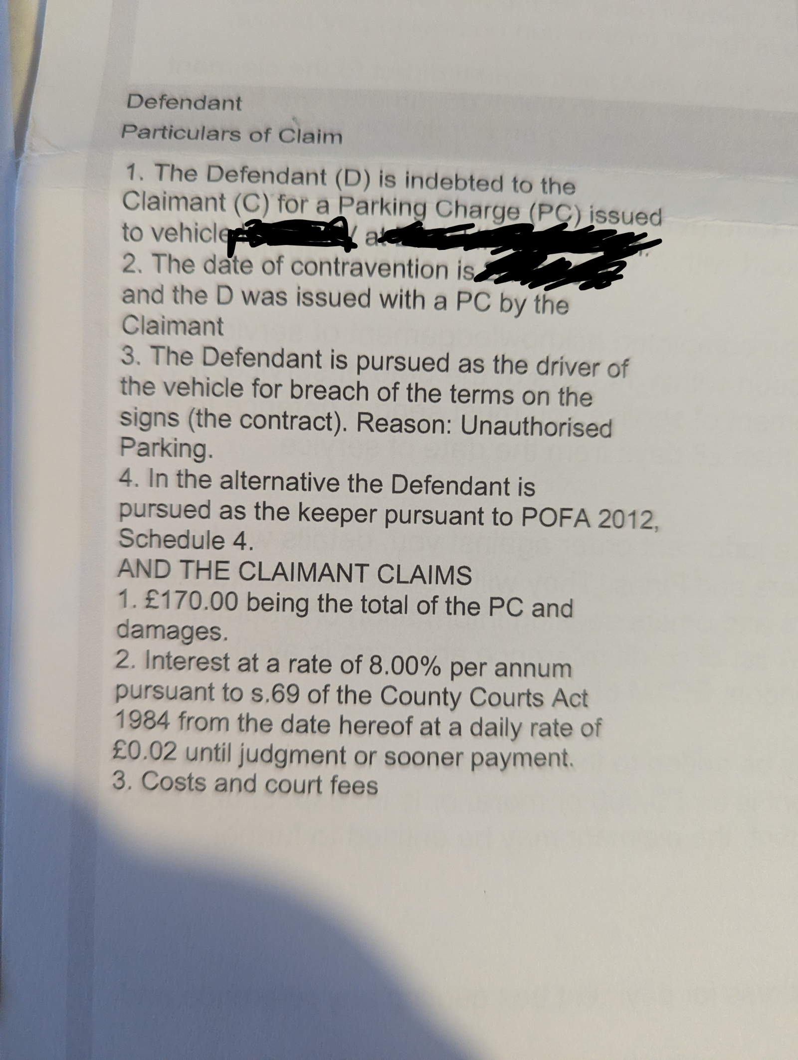 2. With regard to the principal alleged PCN sum: Is this damages, or will it be pleaded as consideration for parking?