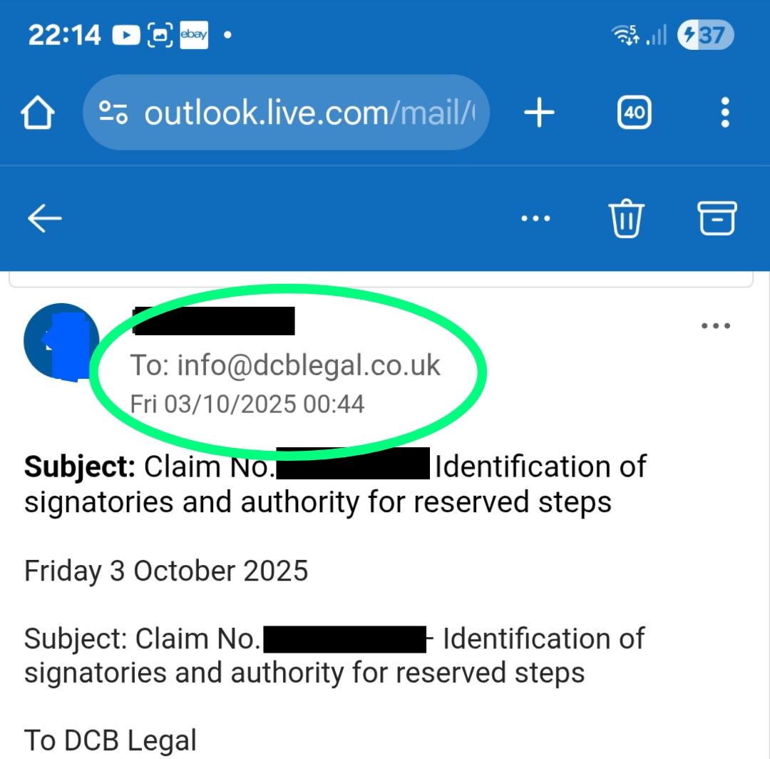 My private telephone number must have been harvested by DCB Legal after I sent them a copy of my DQ. I intended my private telephone number only to be used by a Mediator.