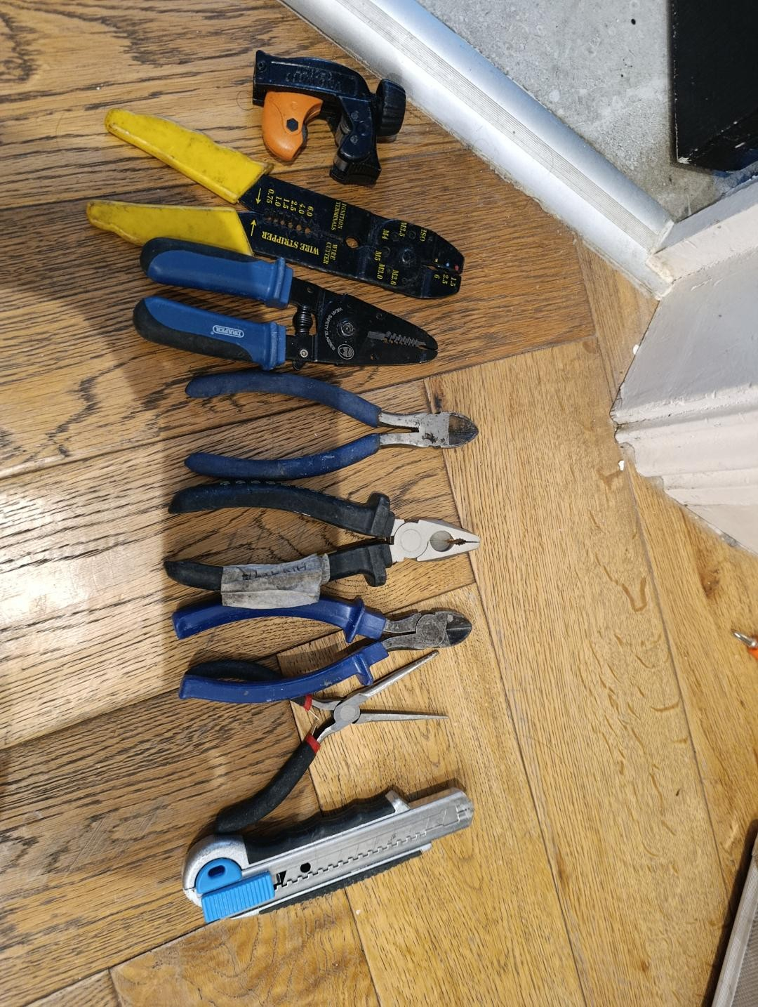 Starting from the top - copper cutter being no. 1 and utility knife being no.8 - which tool is best for cutting the grey cable and which is best for stripping the individual (coloured) cables?