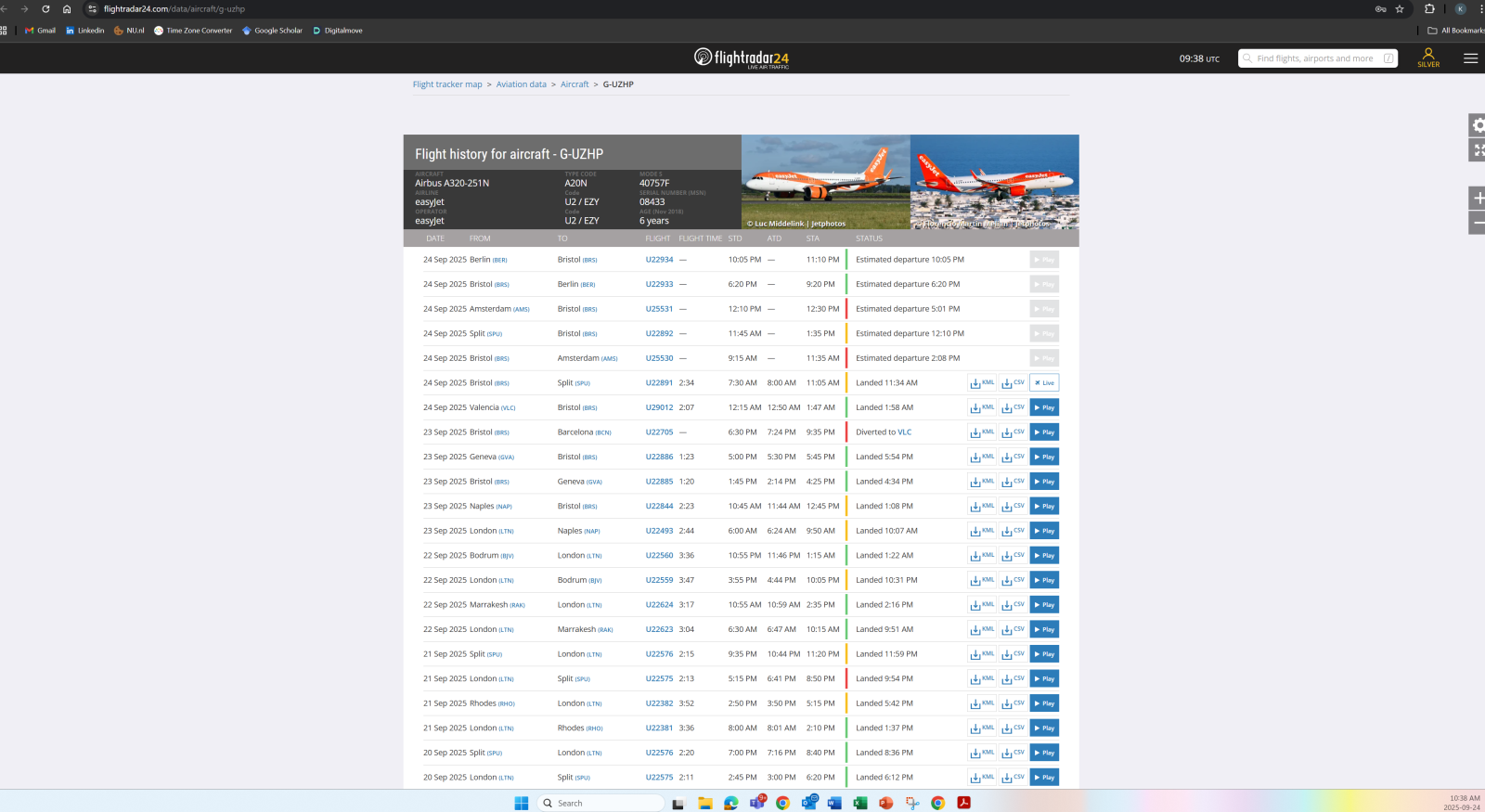 On further investigation of U25530 flight history on FlightRadar24.... it is usually operated by an easyJet Europe aircraft based in Alicante operating the following pattern: