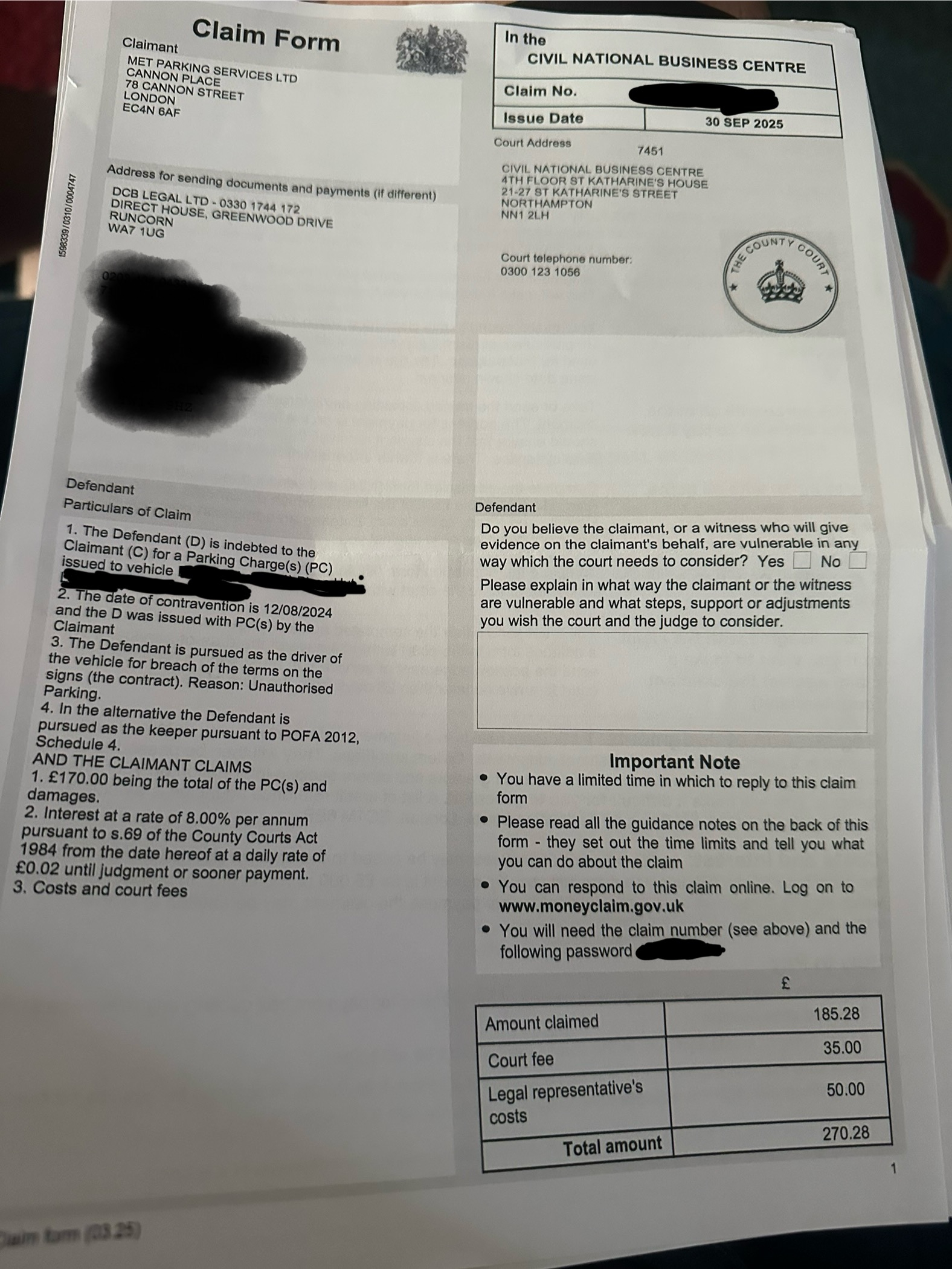 The claim also exceeds the DLUHC’s statutory Code of Practice £100 maximum parking charge.There is no such thing and no such department!