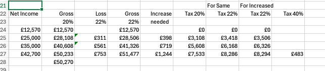 So my previous calculation may need to be tweaked a bit as people going into the 40% band to offset the £751 loss will now be going into the 42% band - so will need a bigger increase.
