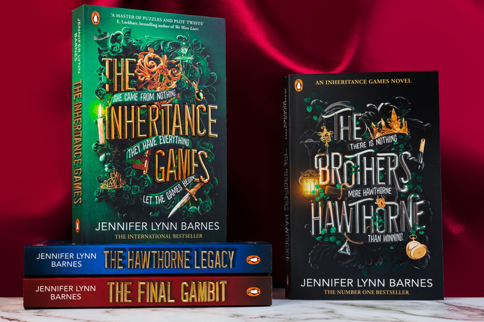 We’re giving away five sets of all four books in the series to five lucky readers. That means The Inheritance Games, The Hawthorne Legacy, The Final Gambit and The Brothers Hawthorne could be yours!